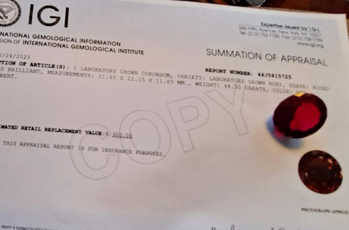 IGI CERTIFIED LAB GROWN RUBY 48.30 CTS