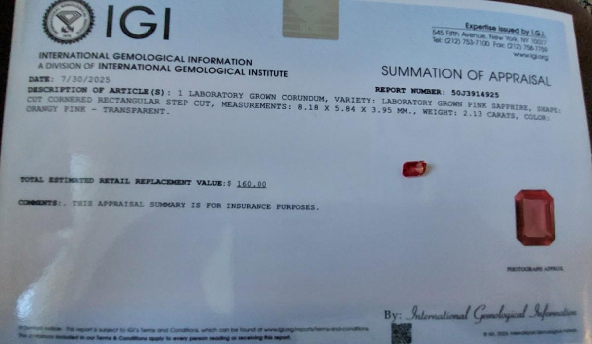 IGI CERTIFIED LAB GROWN RUBY 2.13 cts