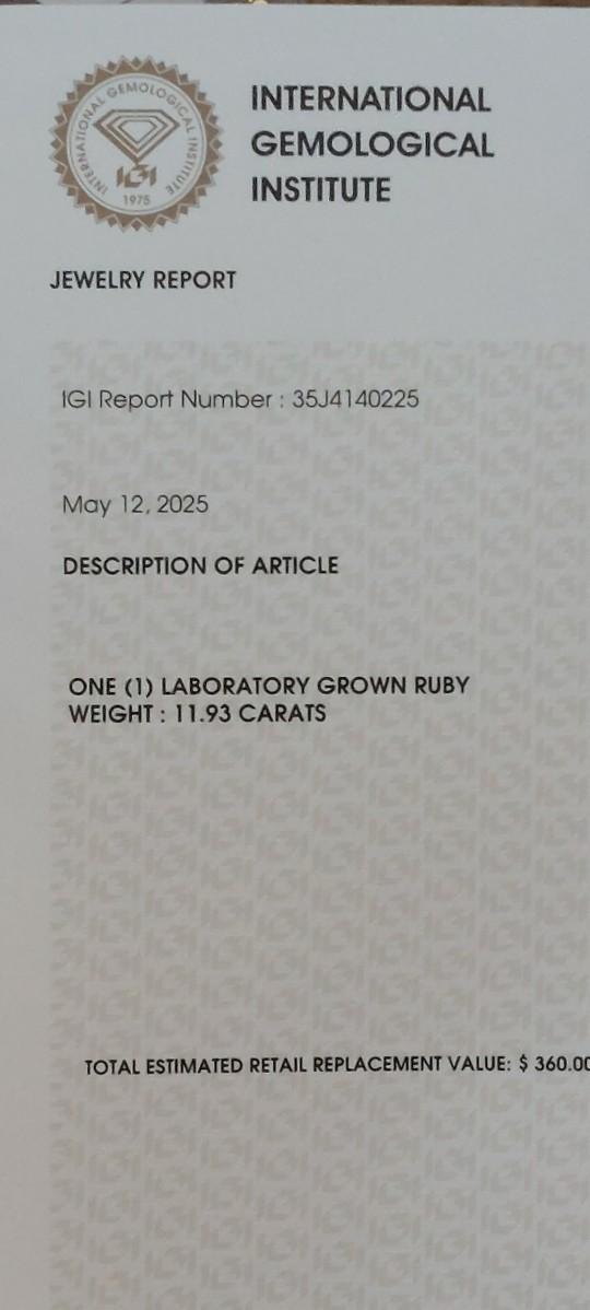 IGI CERTIFIED LAB GROWN RUBY