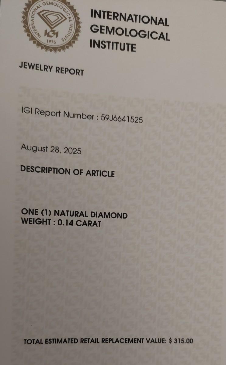 IGI CERTIFIED NATURAL DIAMOND 0.14 CT