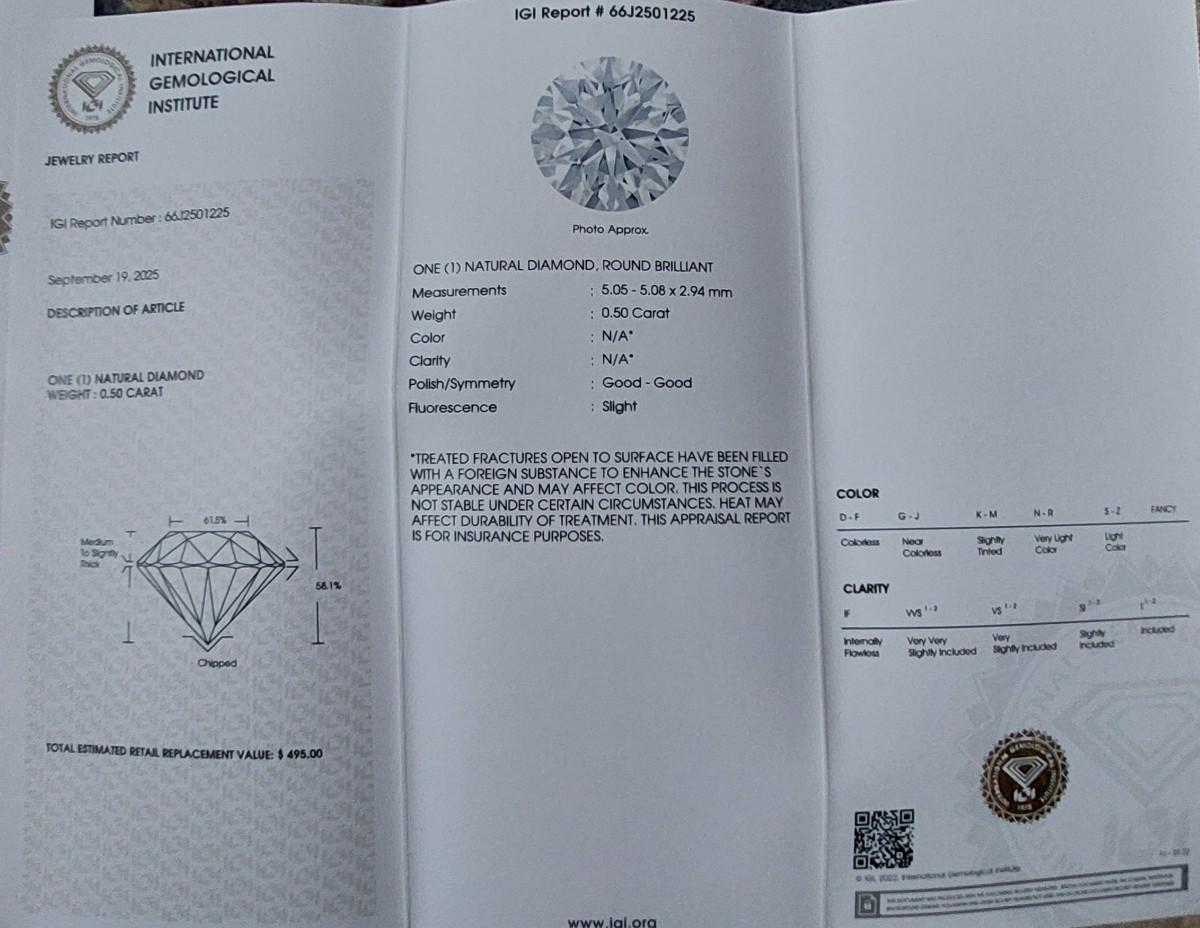 IGI CERTIFIED NATURAL DIAMOND 0.50 CT