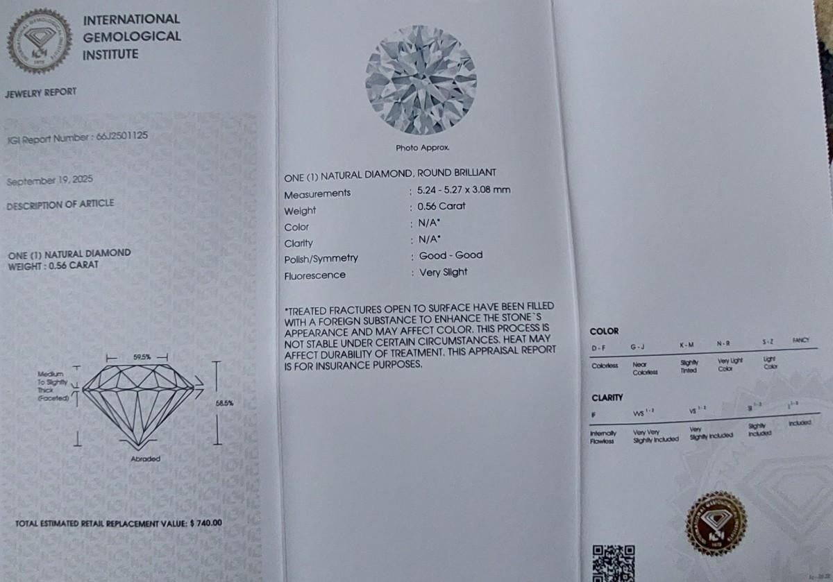 IGI CERTIFIED NATURAL DIAMOND 0.56 CT