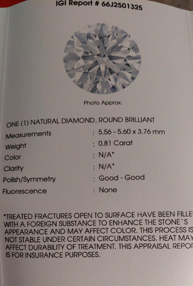 IGI CERTIFIED NATURAL DIAMOND 0.81CT