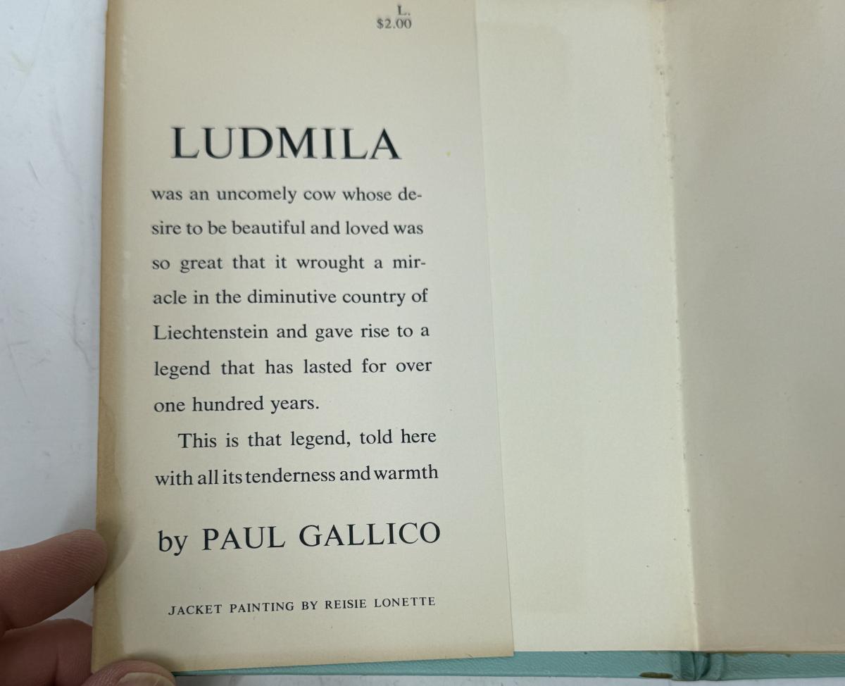 Ludmila: A Legend of Liechtenstein is a 1954 children's book by Paul Gallico about a small cow named Ludmila who wants to win the Liechtenstein harvest ceremony's milk-production competition. The story is set in the Principality of Liechtenstein and features illustrations by Reisie Lonette.