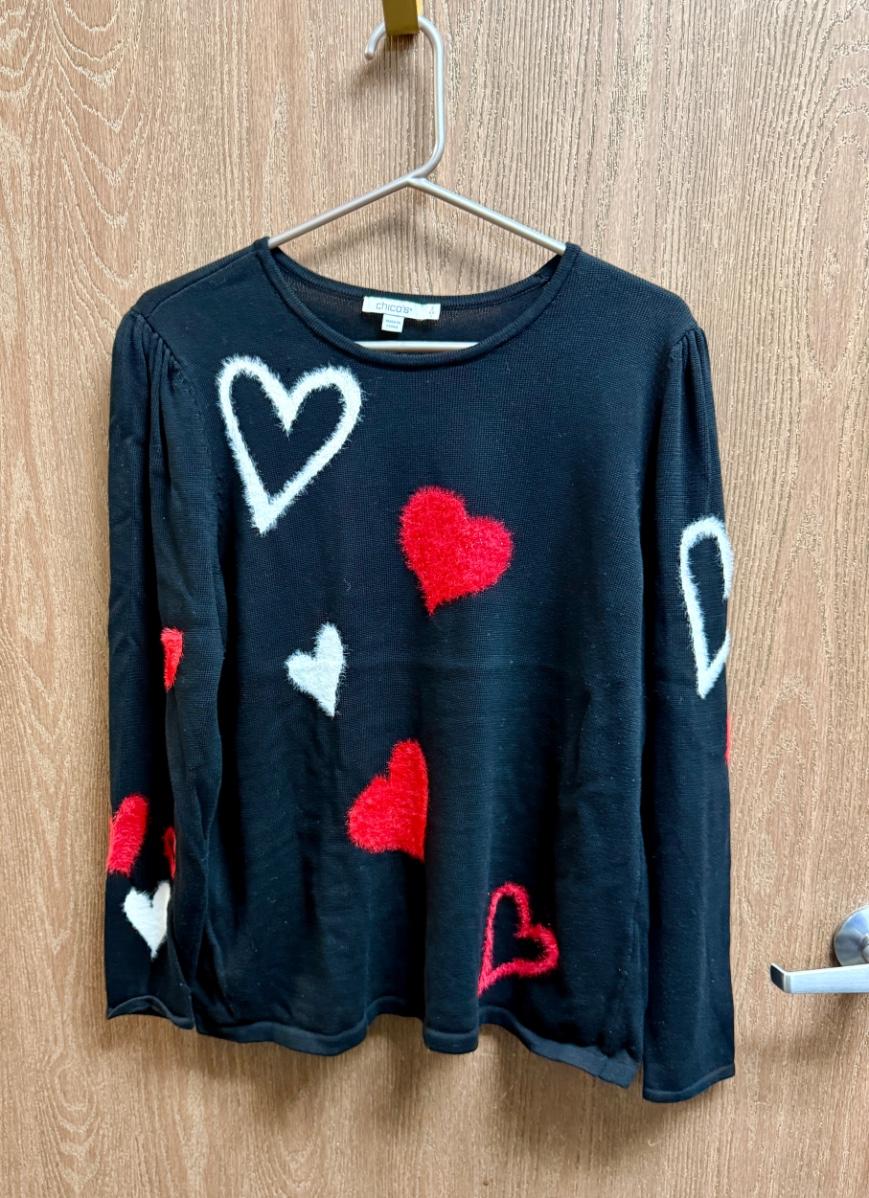 Vintage Valentine's Day Chico's Size 2 - Heart Design Sweater Black with red & white