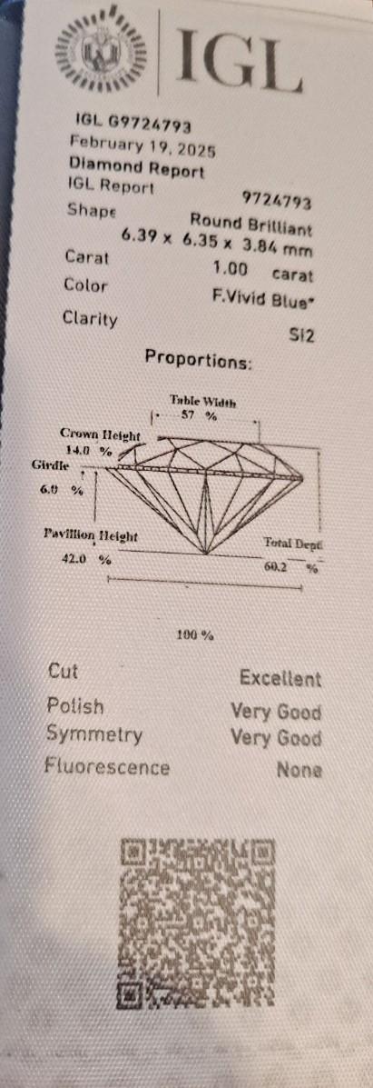 IGL Blue Diamond 1 ct Certified SI2