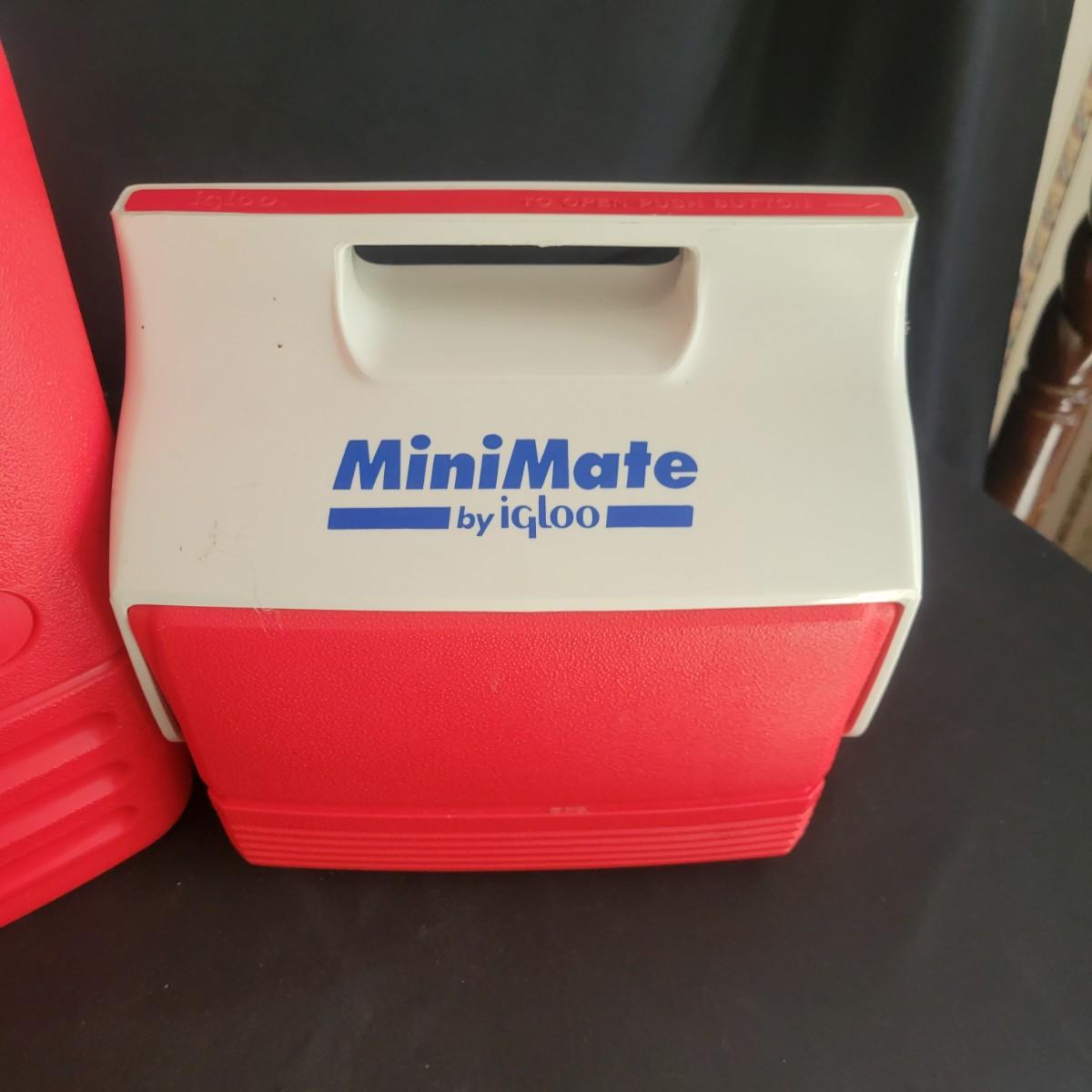 An assortment of three Igloo coolers of varying sizes the largest of which measures approximately 14.5" x 10" x 13.5"H. Also included is a pair of folding chairs that fit into one carrying bag. The chairs measure approximately 18.5" x 18" x 29.5" with a seat height of 16.5". Local pickup only