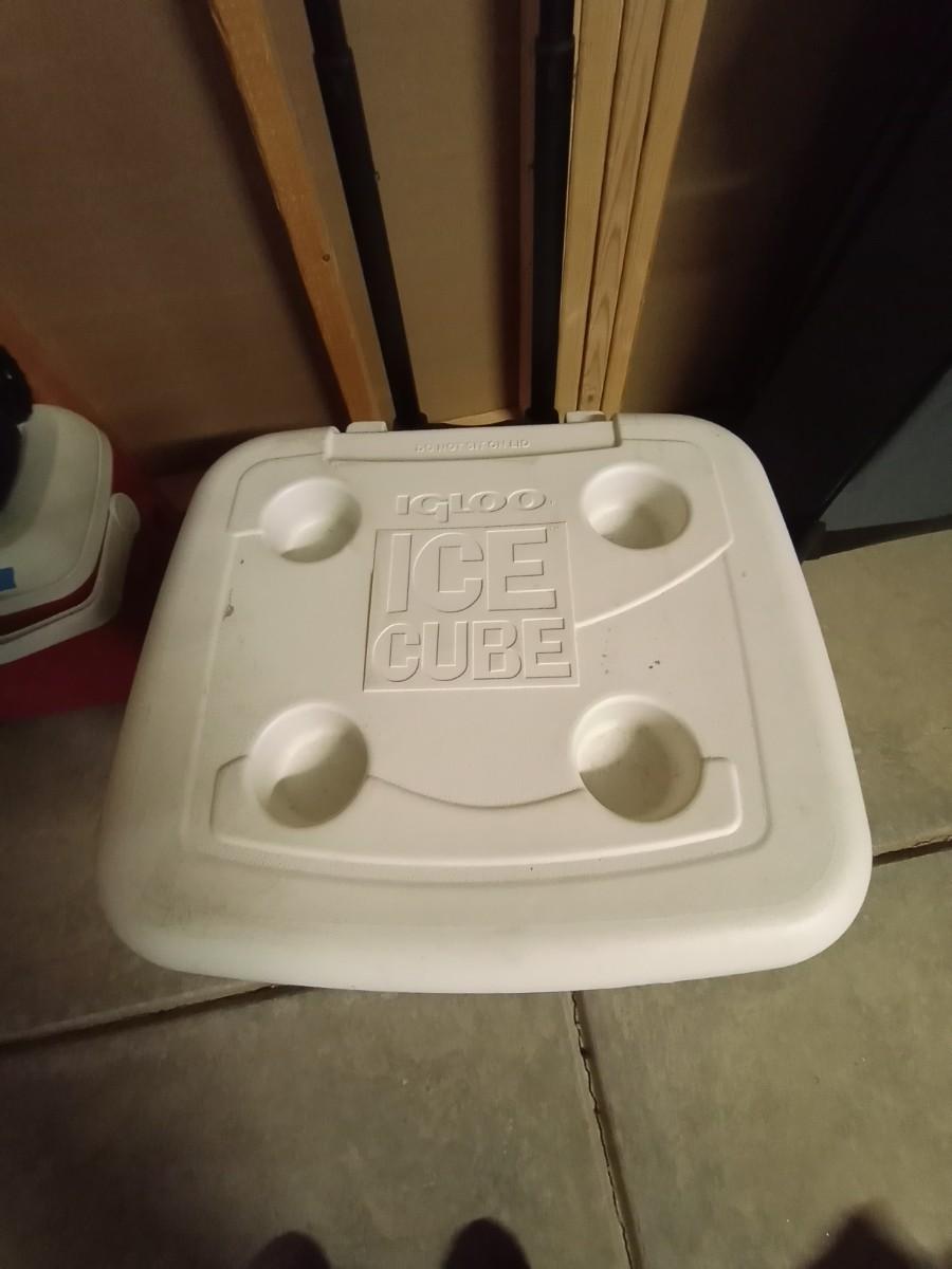 IGLOO ICE CUBE COOLER WITH DRINK HOLDERS IN LID