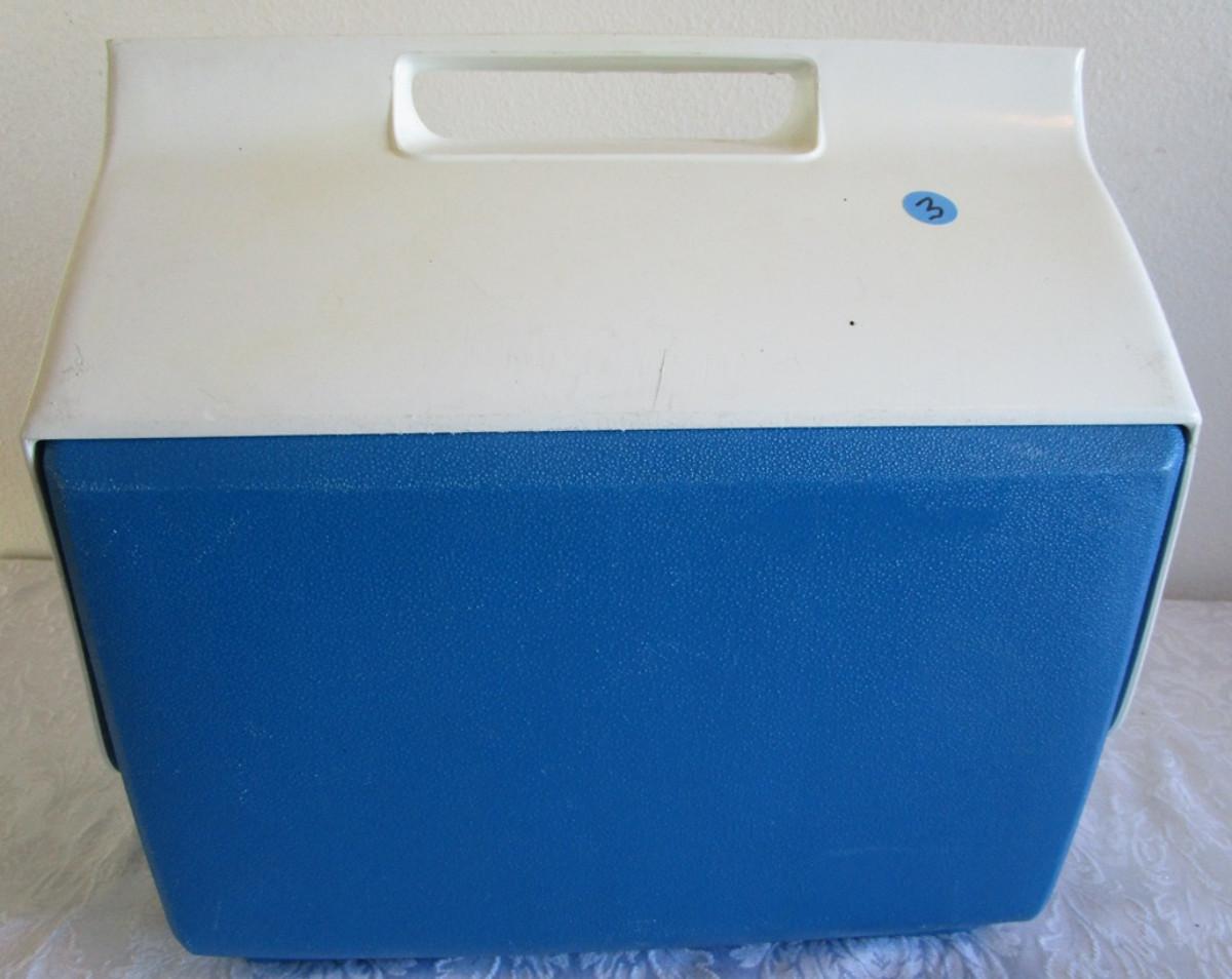 Blue & White, 14" tall x 14"x 10-1/2", see pictures