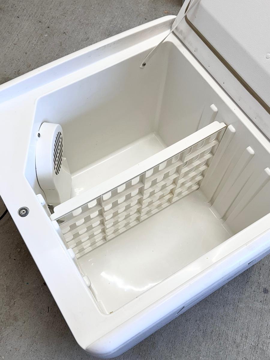 Has a plug for outlet and cigarette plug. ~ 17.5” x 21” D x 21” W ~ great condition