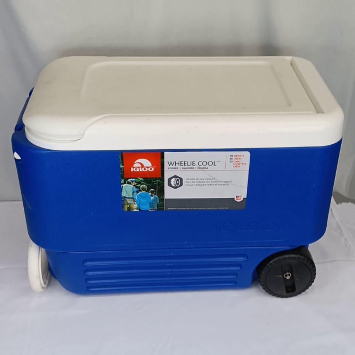 This is a pre-owned 38 quart wheeled Igloo cooler that is in good condition.