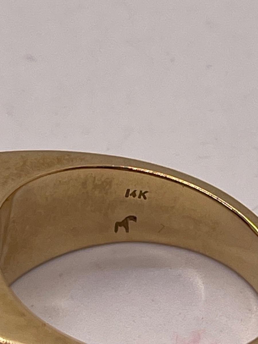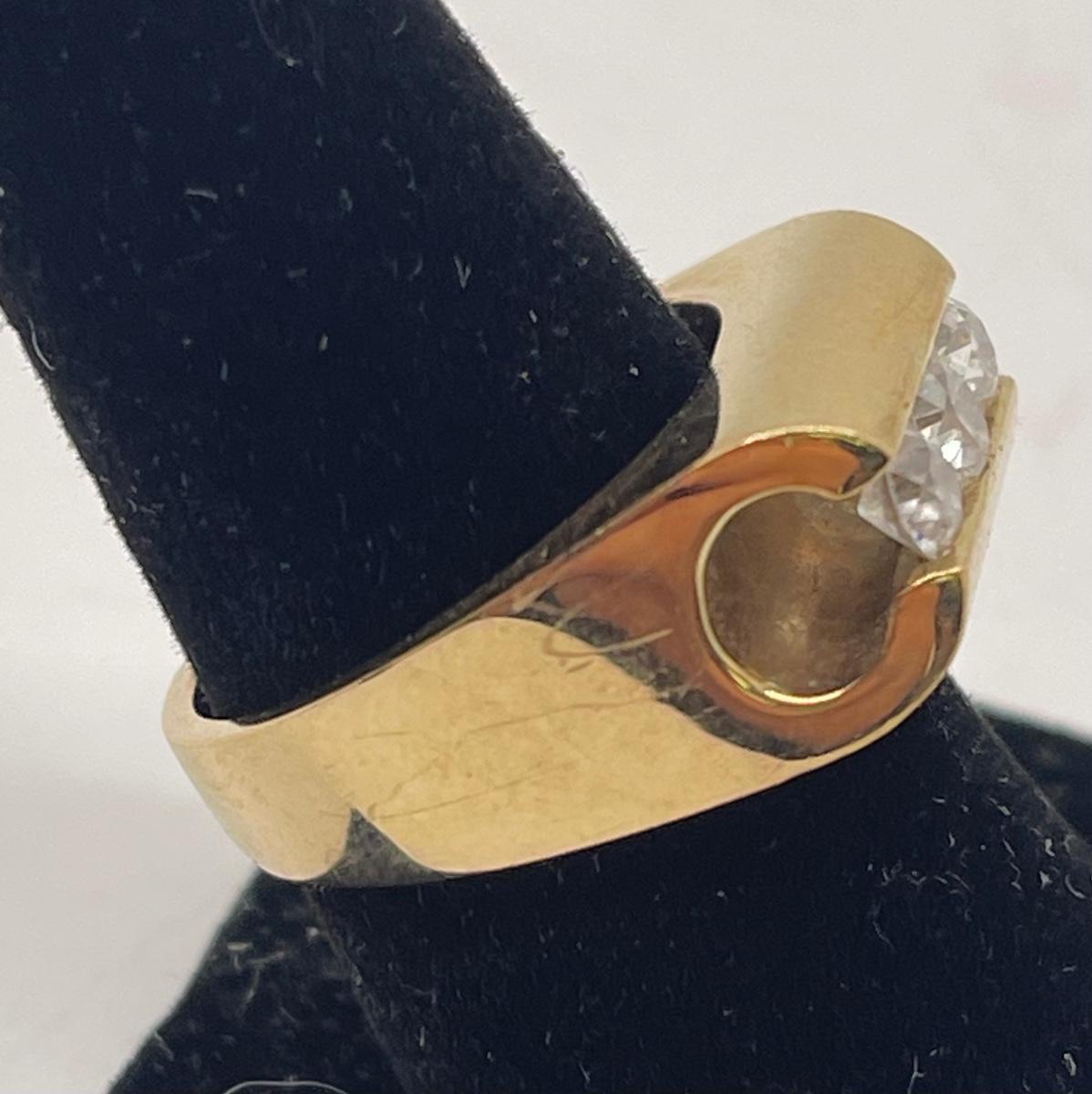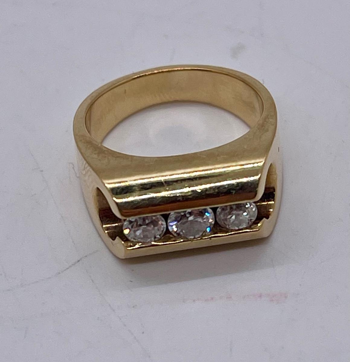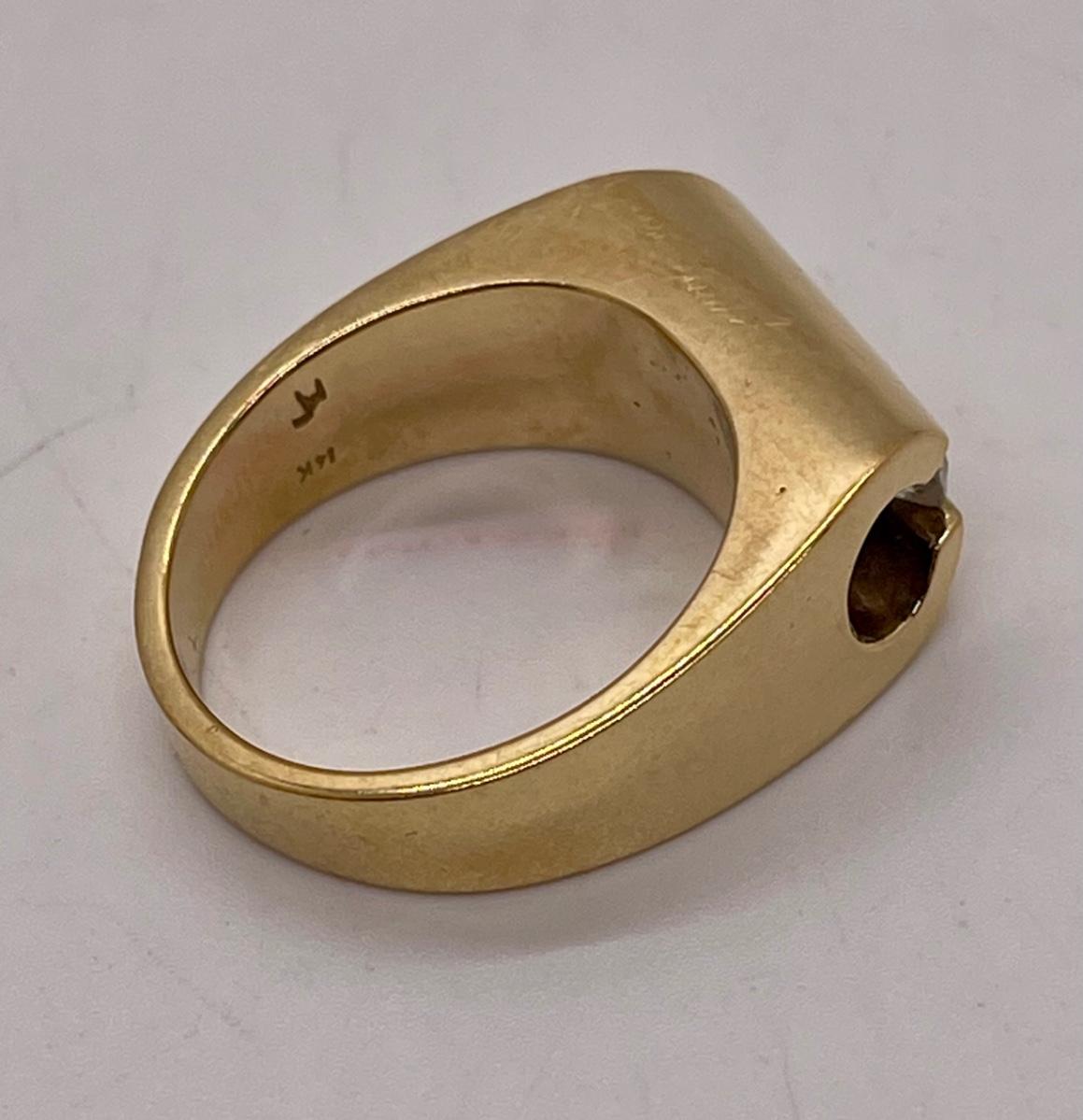 Vintage Men's Yellow Gold 14K Ring w/ 3 European cut Diamonds pinkie ring size 8