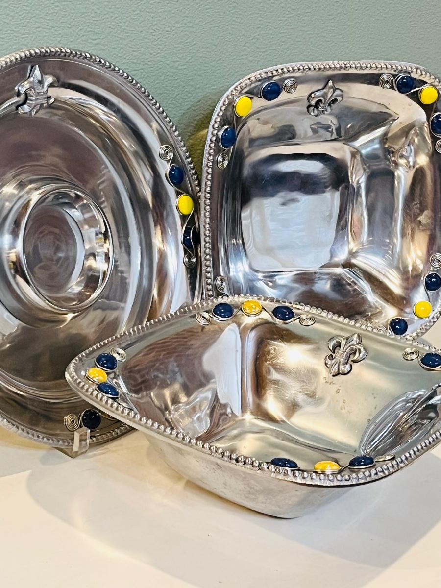IHI ~ India ~ Three (3) Piece Fleur De Lis Pewter Serving Set