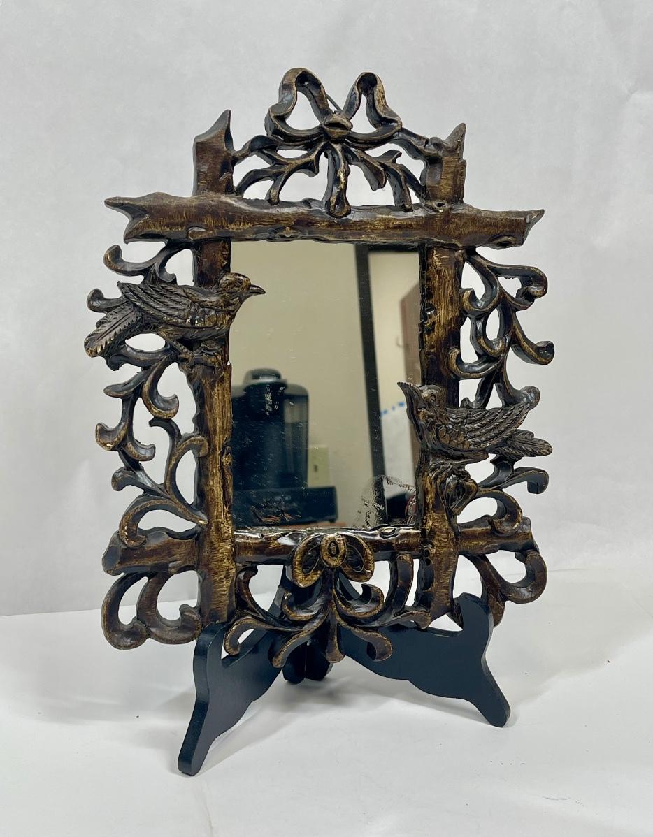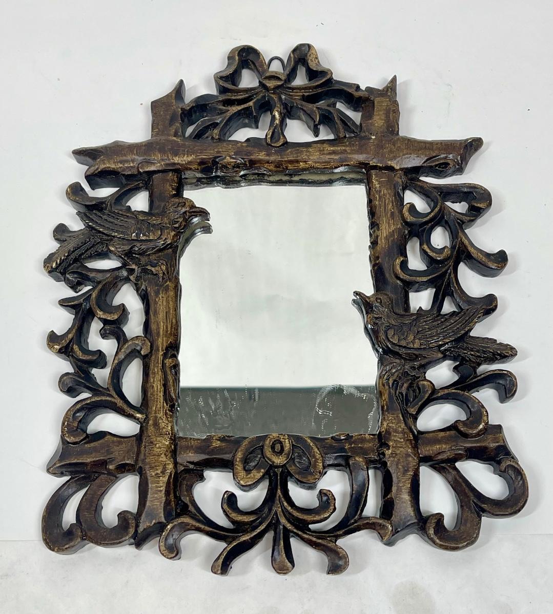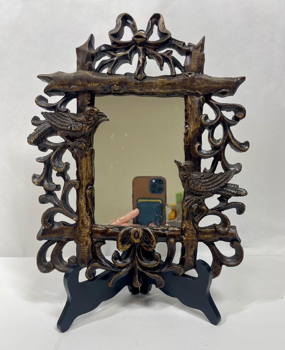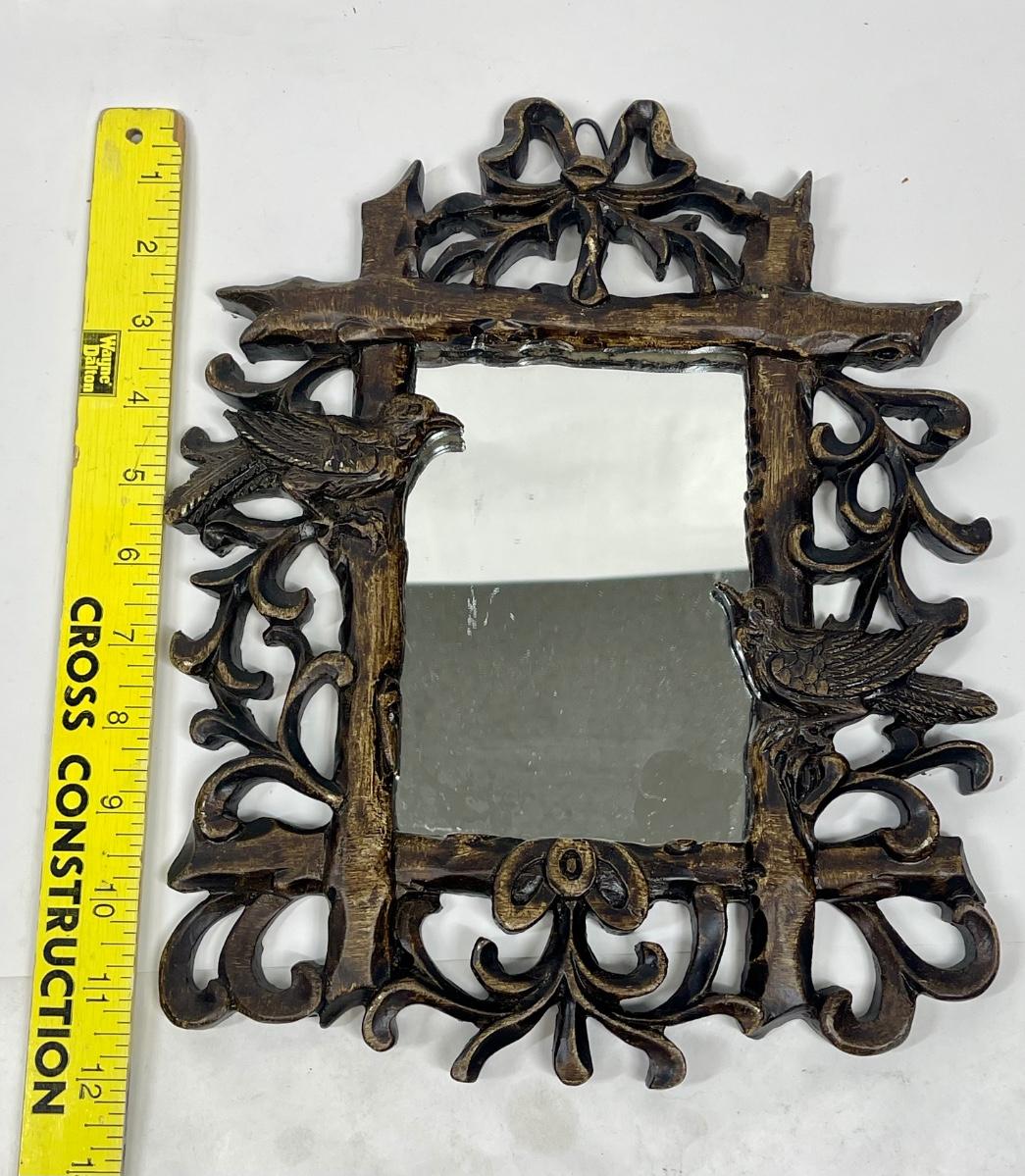 Wall Hanging Mirror Faux Wood with Bird Design Frame