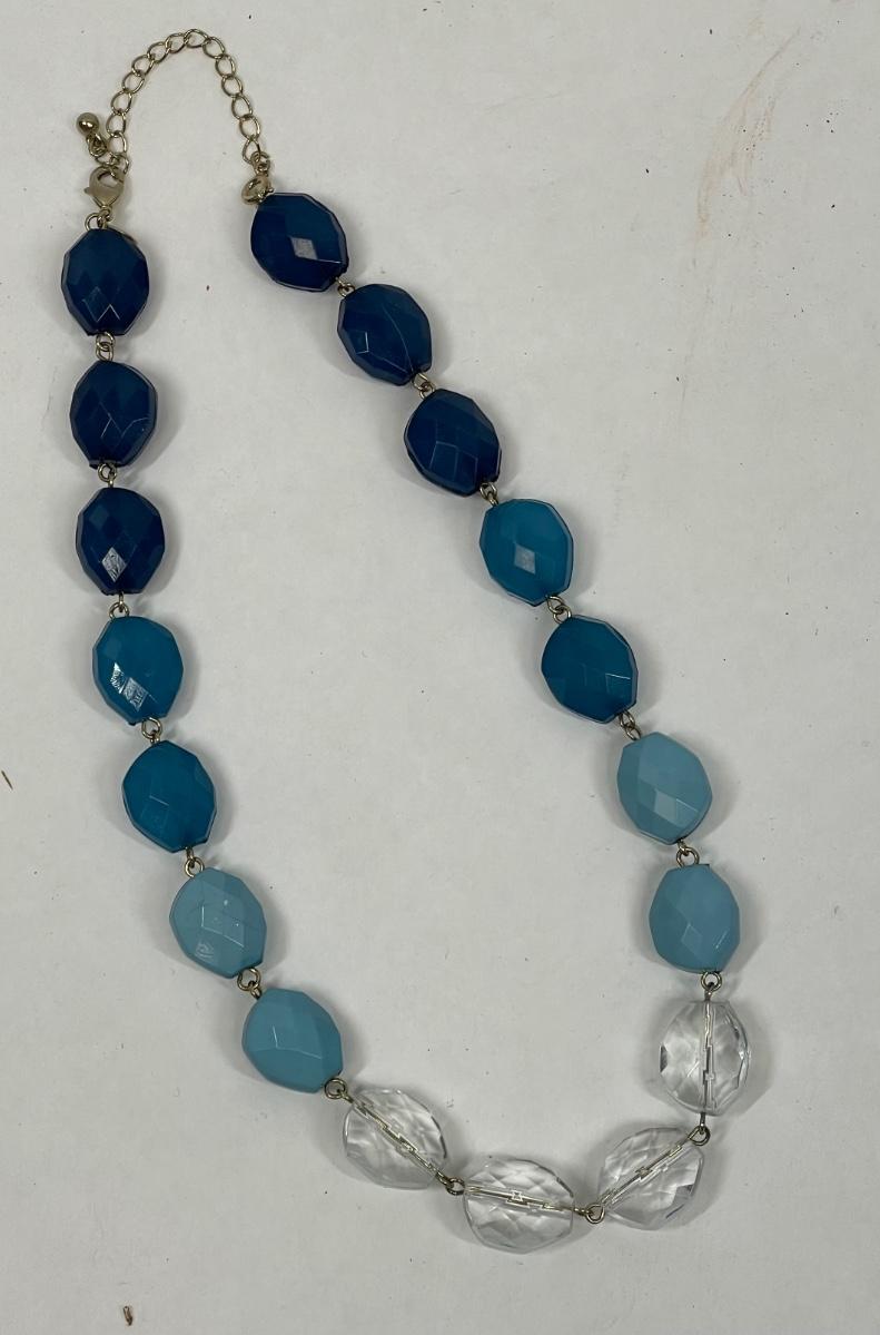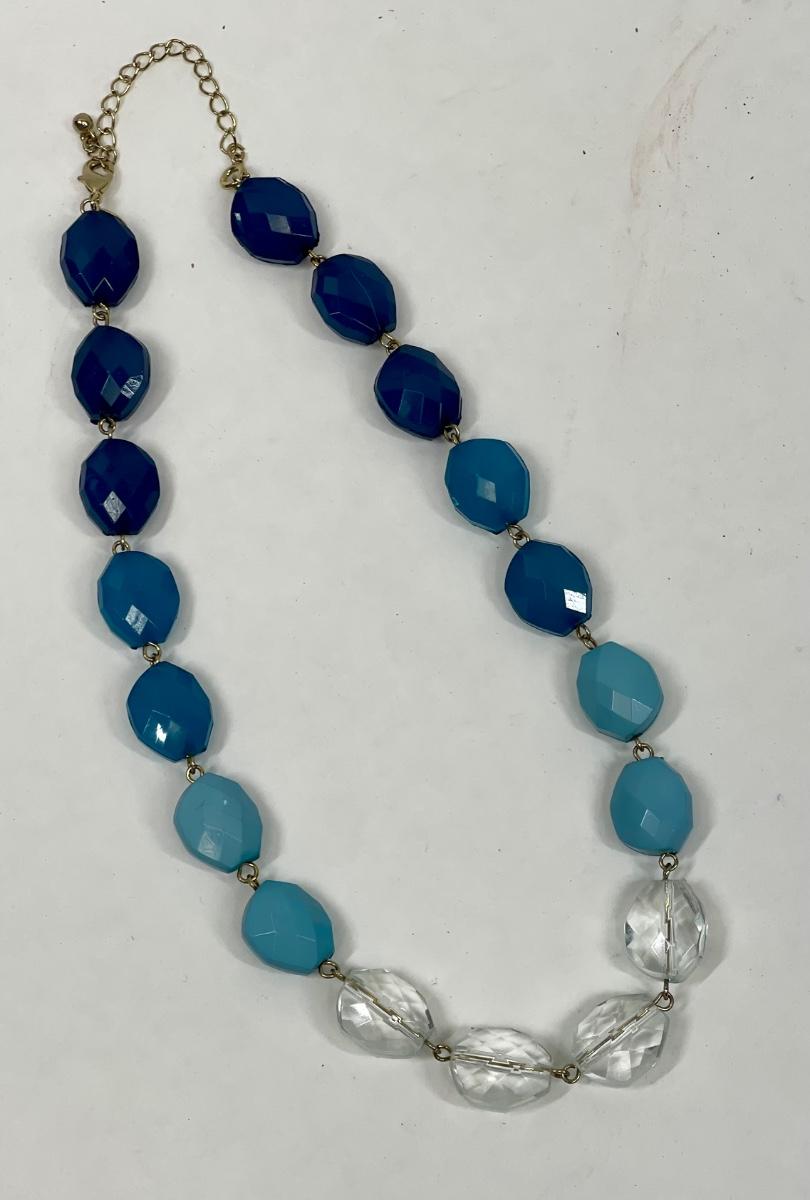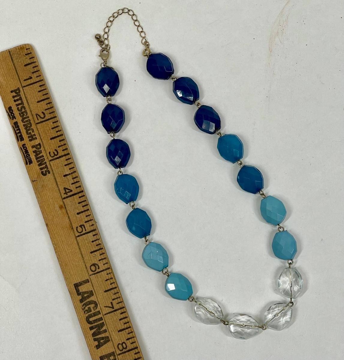 Vintage Multi-color Blue Plastic Bead Necklace with color banding