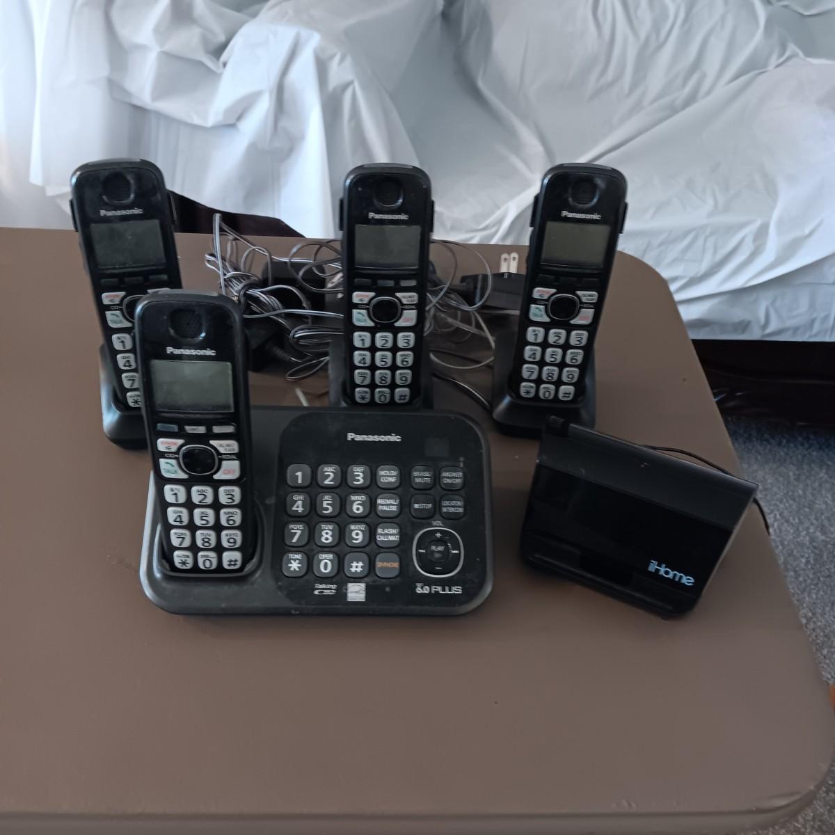 iHOME SPEAKER AND 4 HAND SET CORDLESS PHONE WITH VOICE MAIL