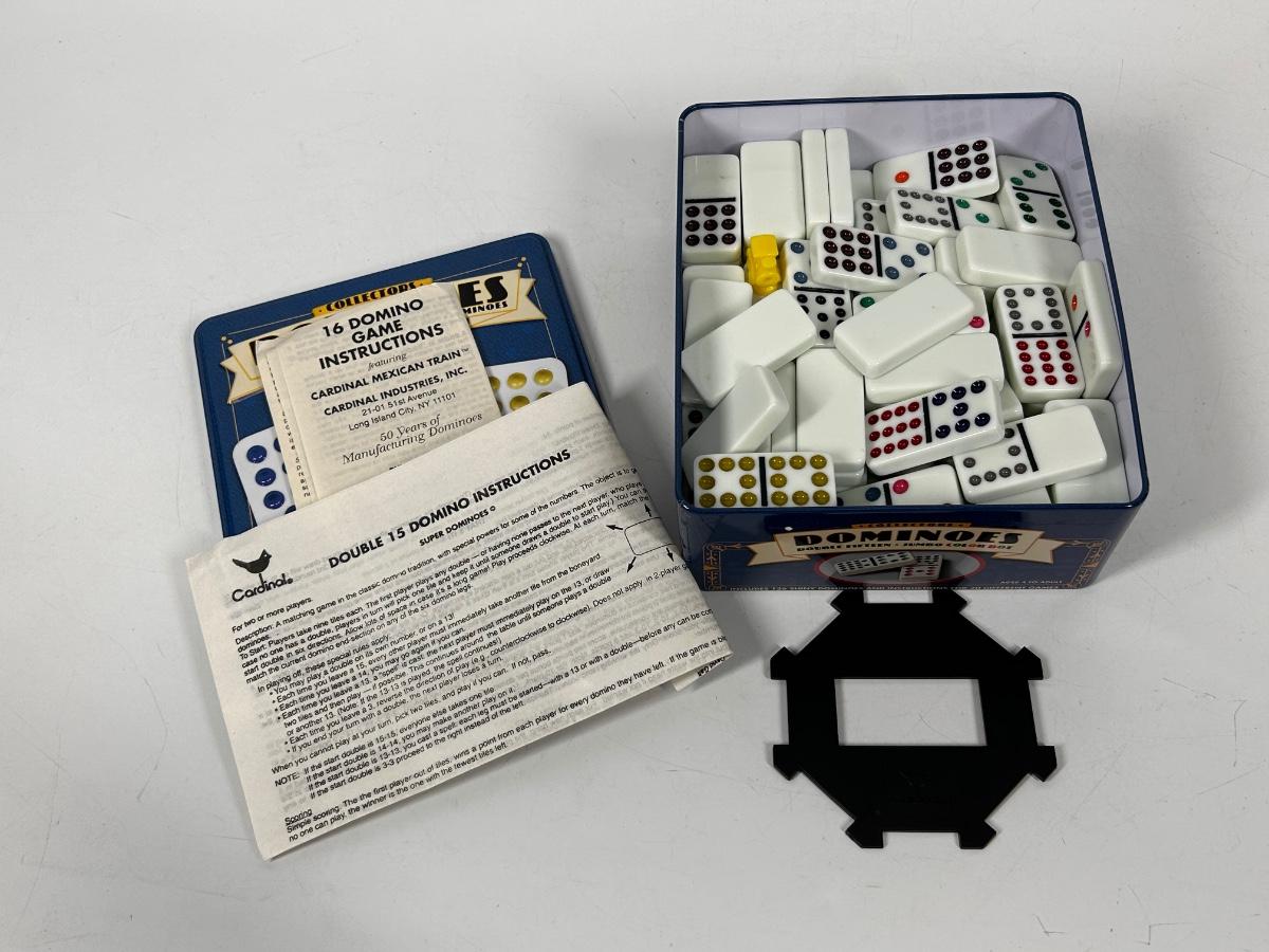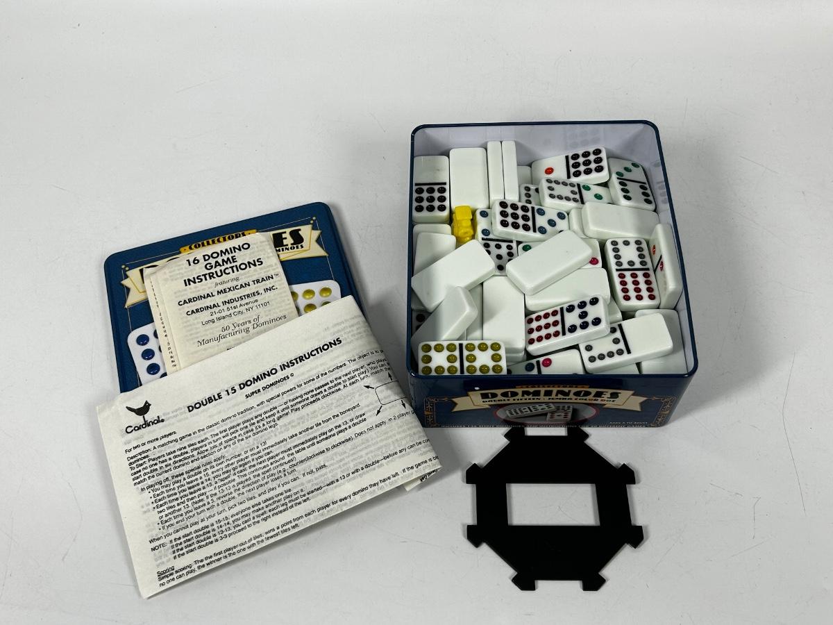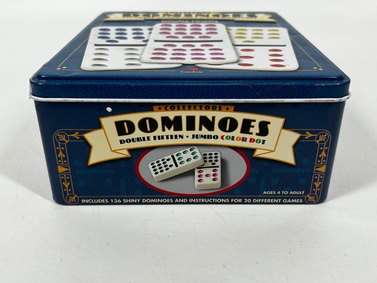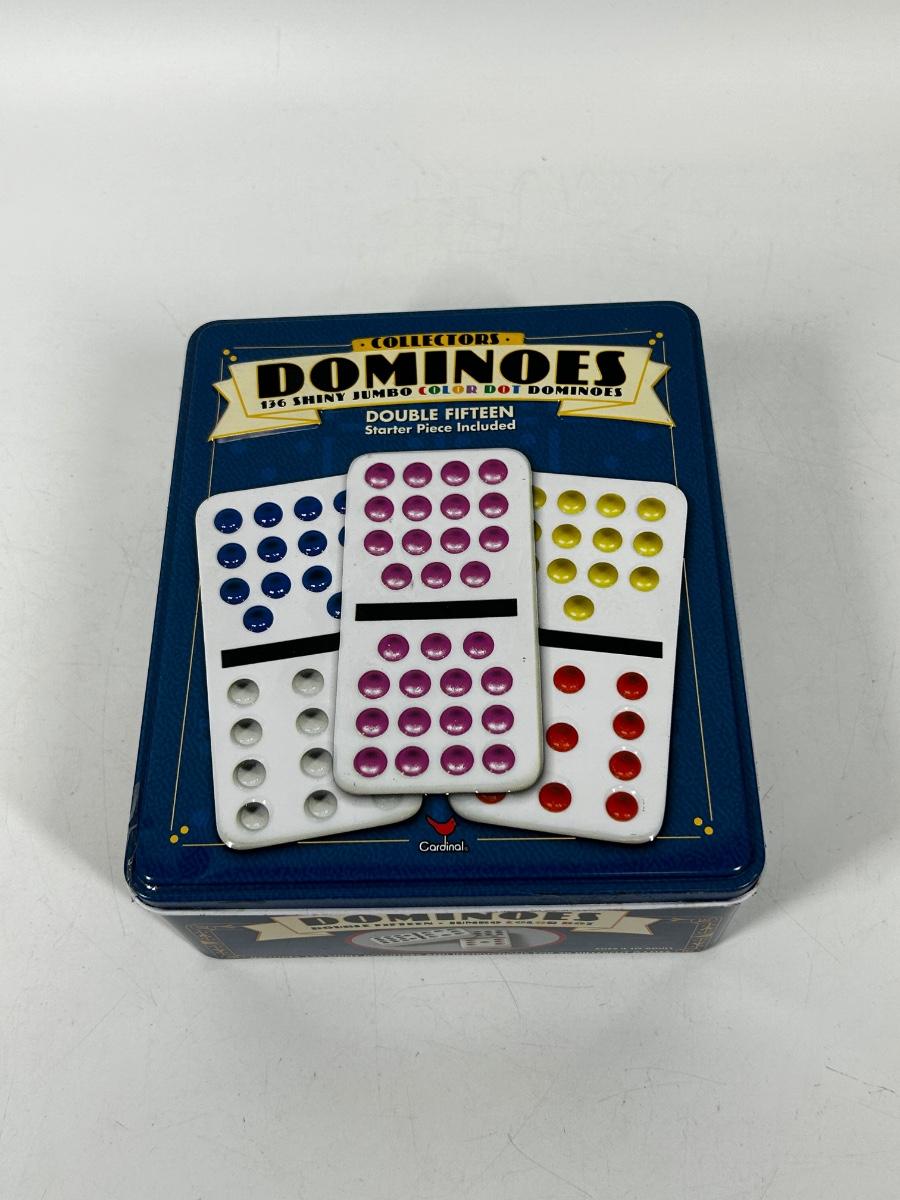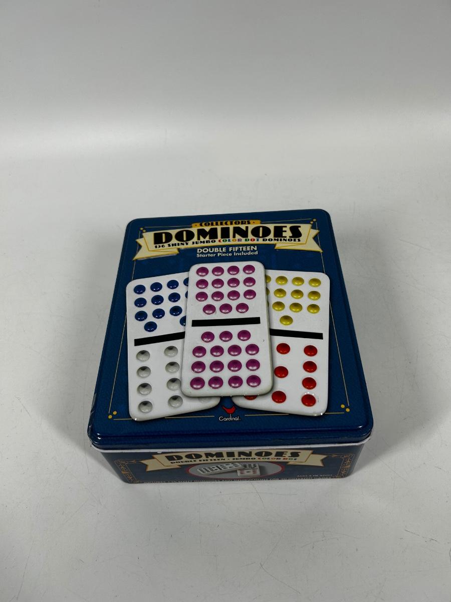 Double Fifteen Dominoes Set in Tin Storage Box with Game Instructions