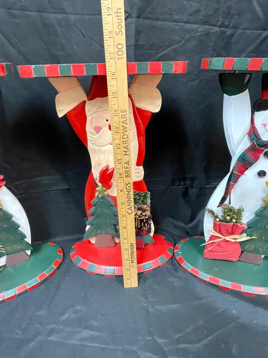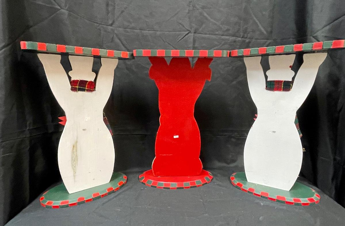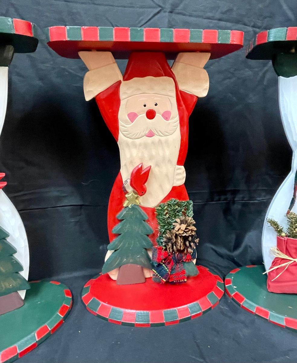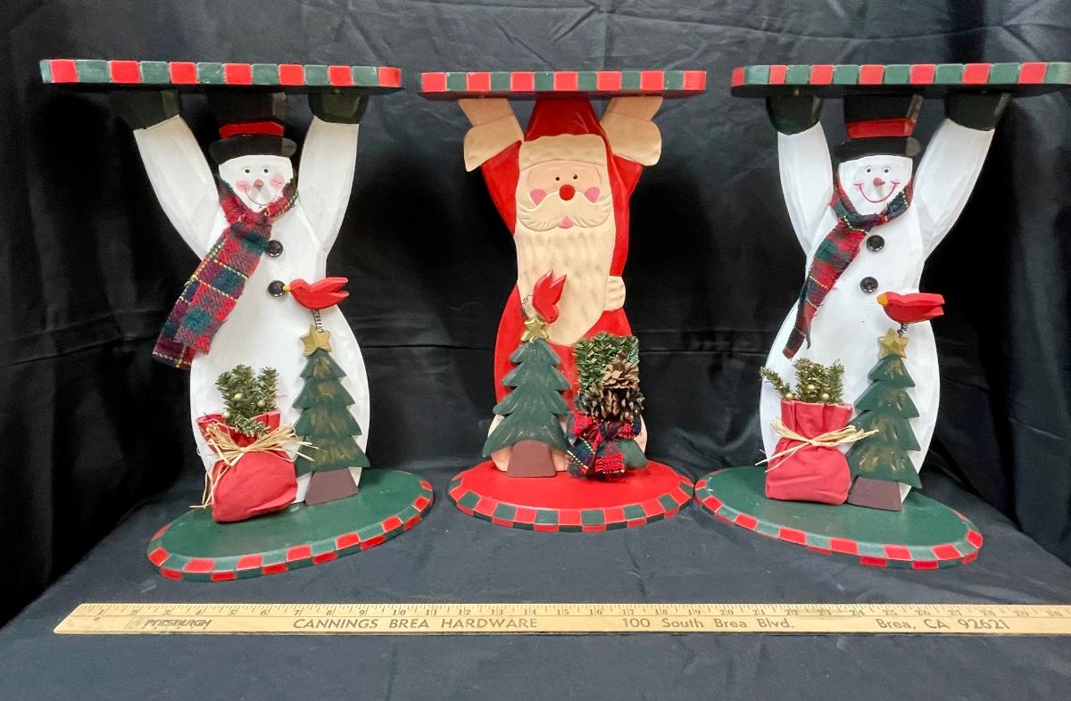 Cute Hand Painted Wood Santa Claus and Snowmen Side Tables Plant Stands