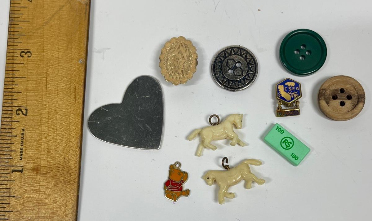 Random Trinket Lot: Winnie the Pooh Charm, Horse Charms, Lapel Pins and More