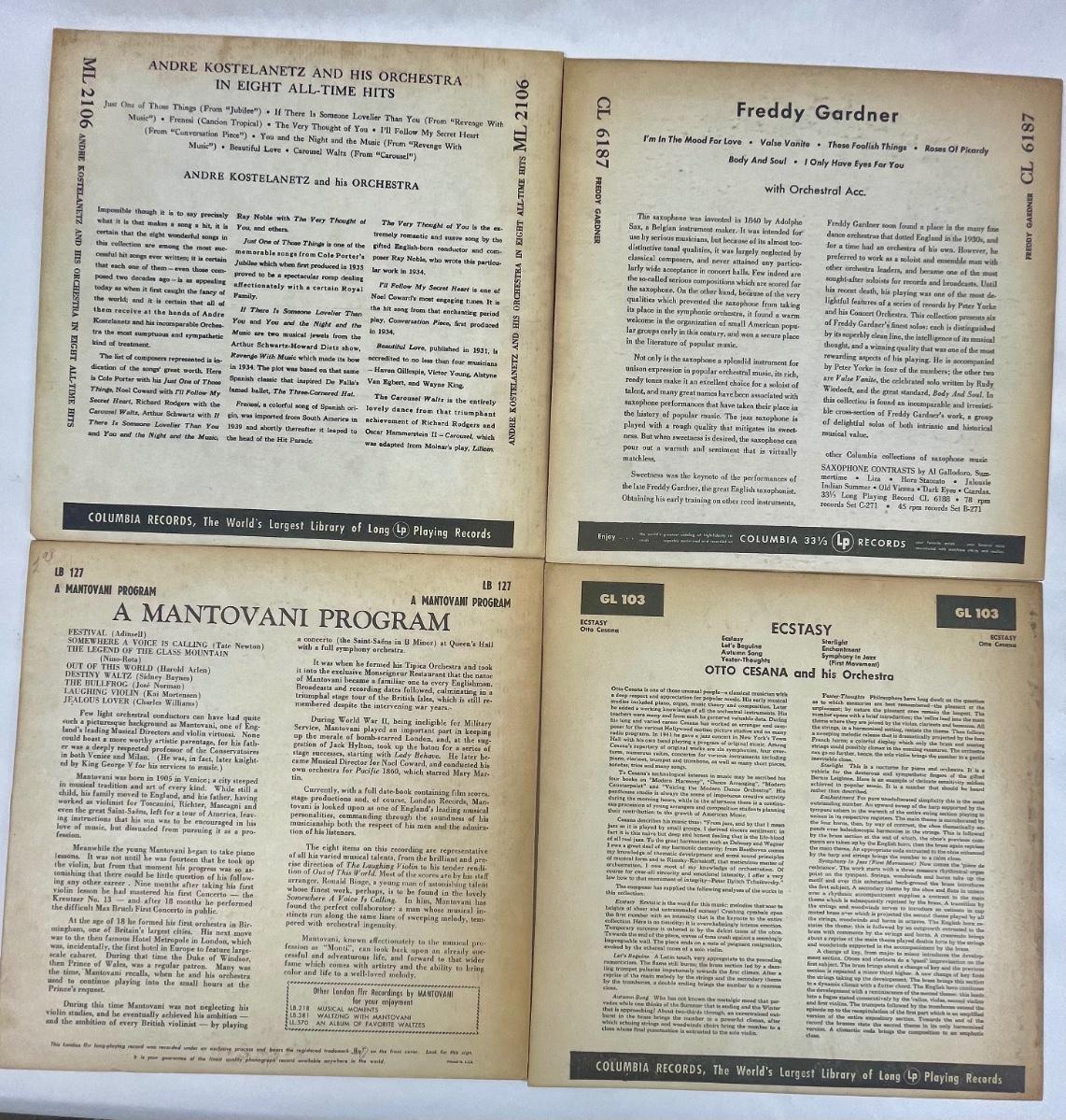 lot of 4 VIntage Vinyl Record Albums 10 Kostelanetz, Freddy Gardner, Ecstasy, Mantovani Program