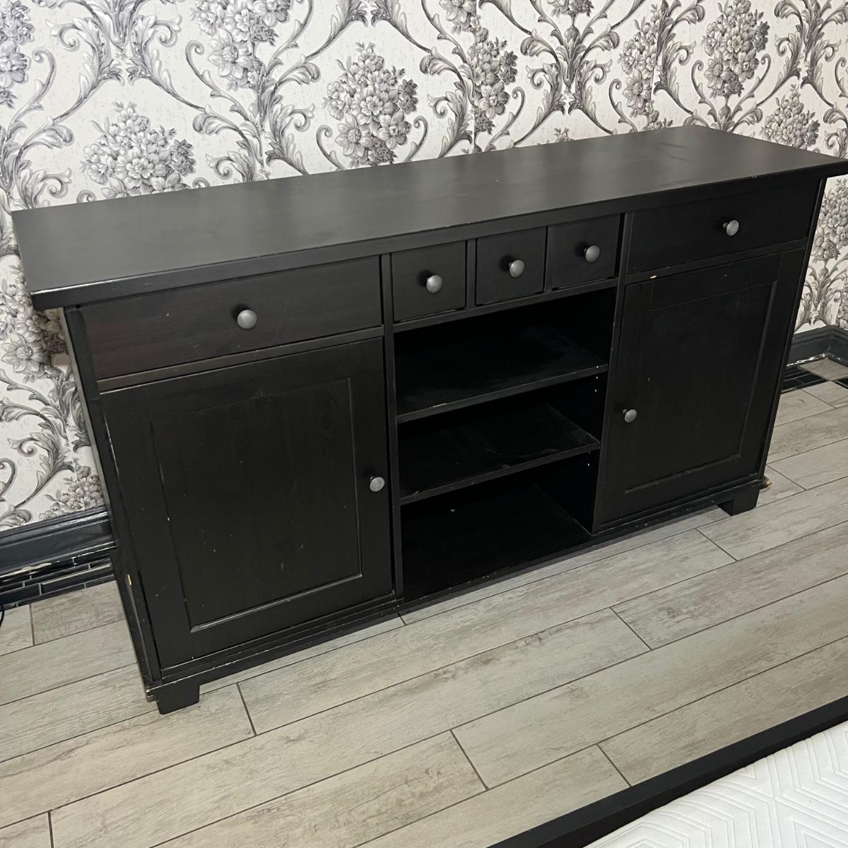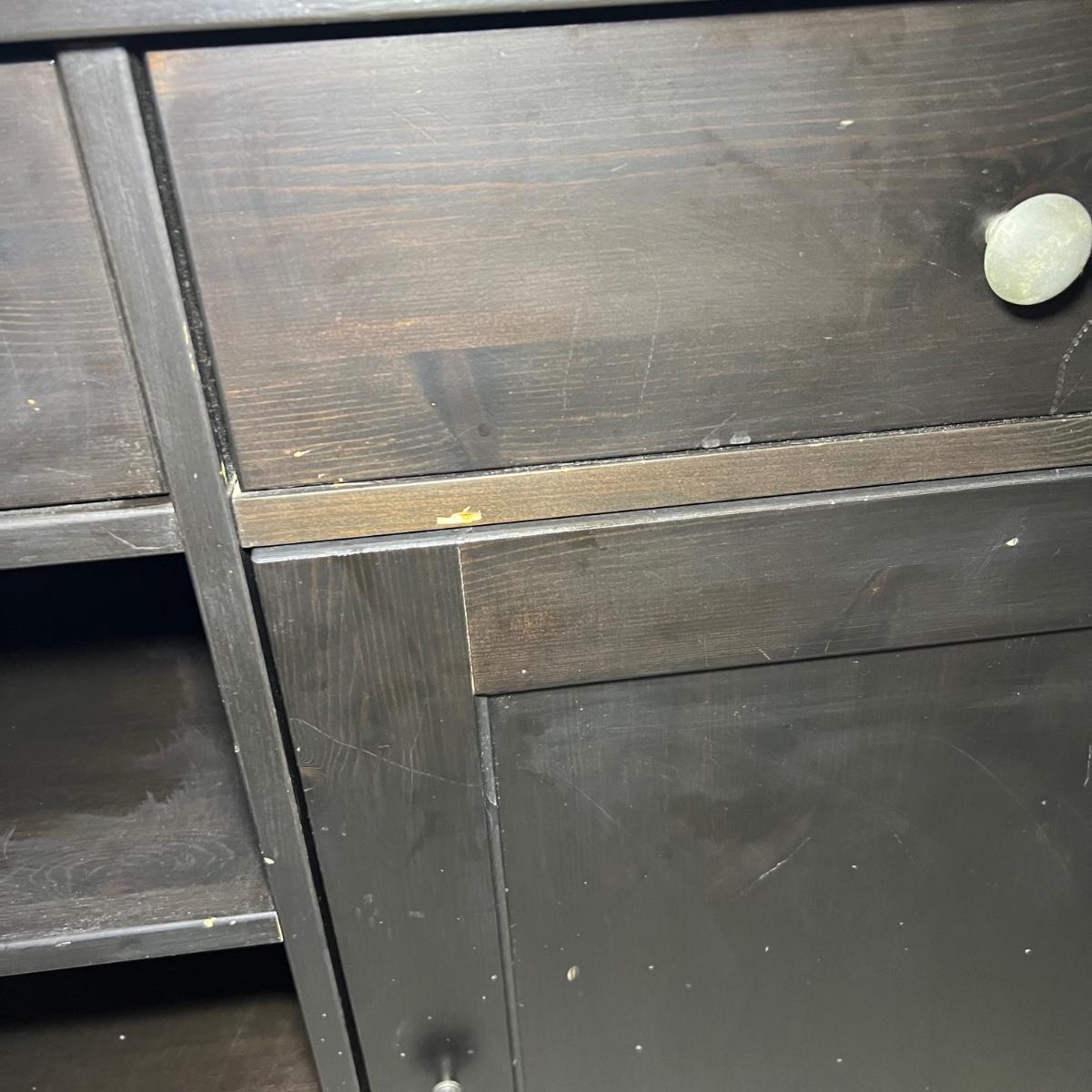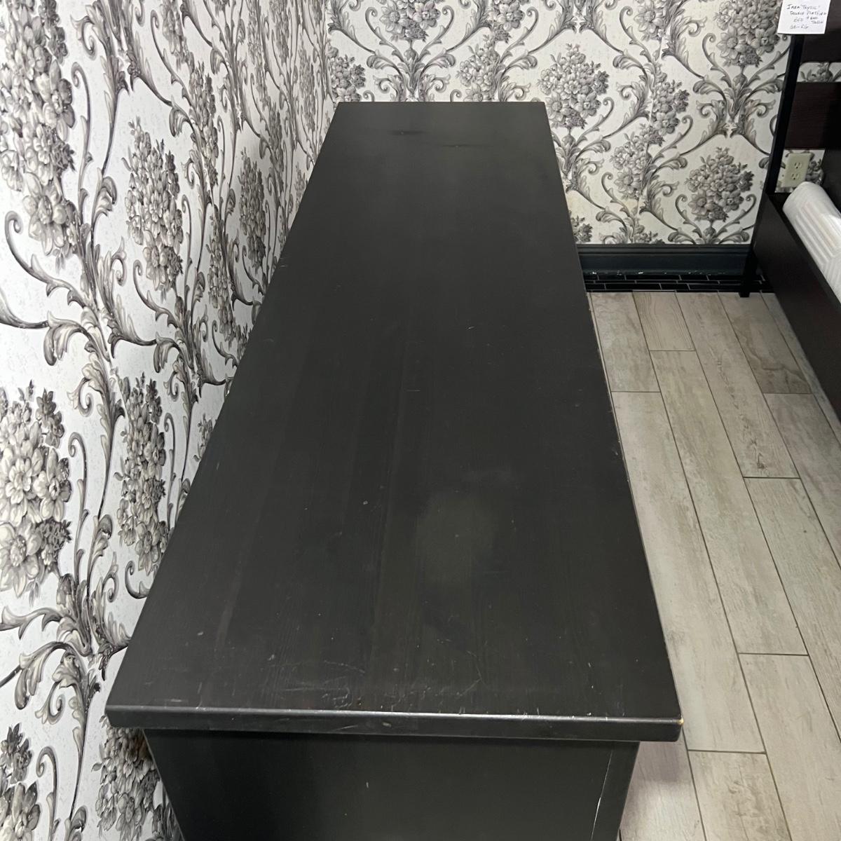 Larger dresser with shelves measures 64” x 19” x 36”H.