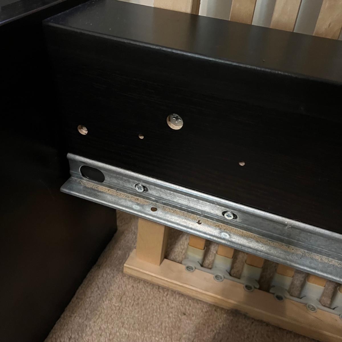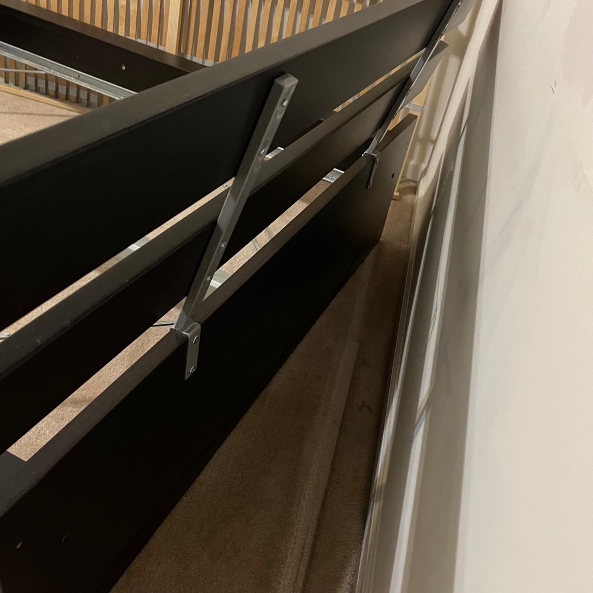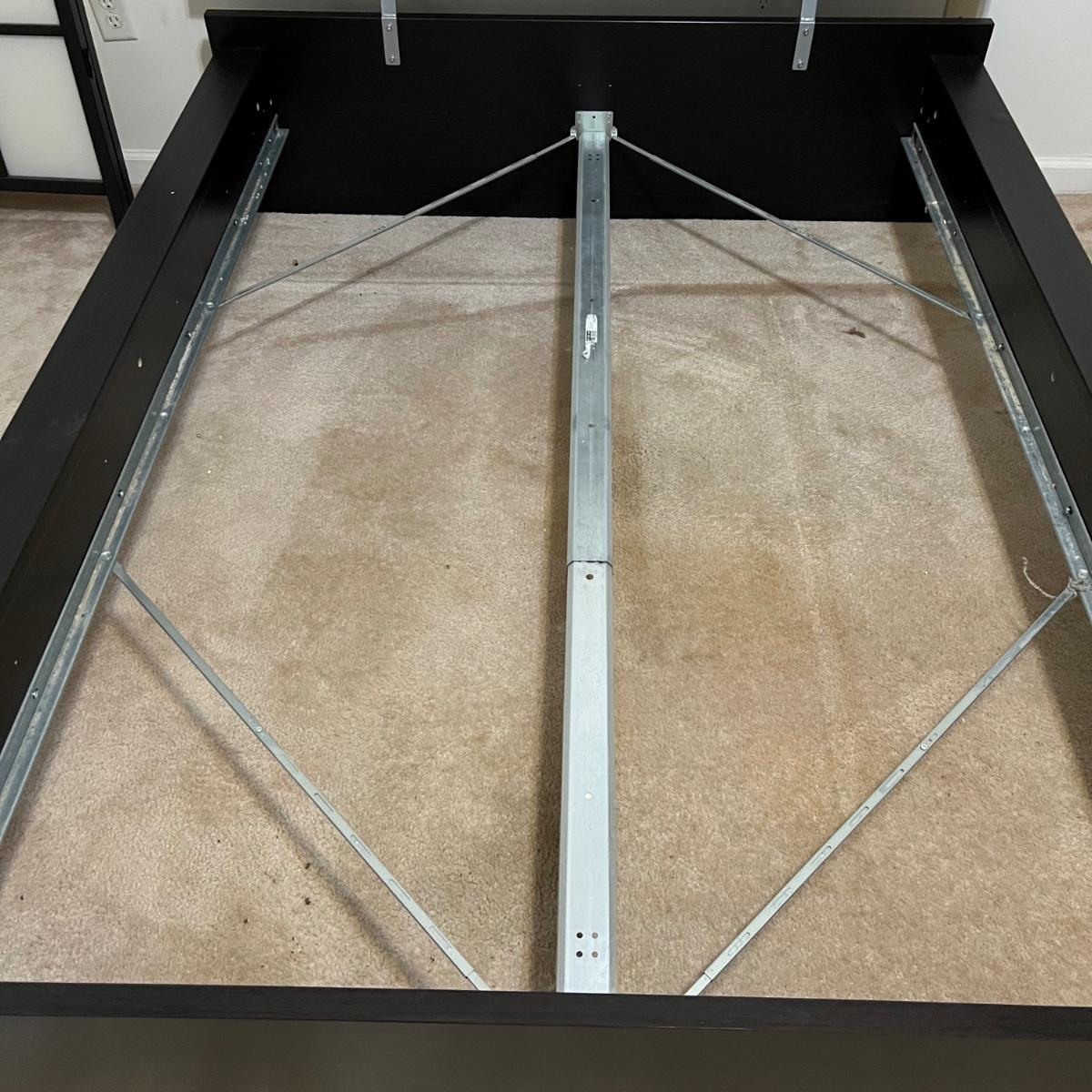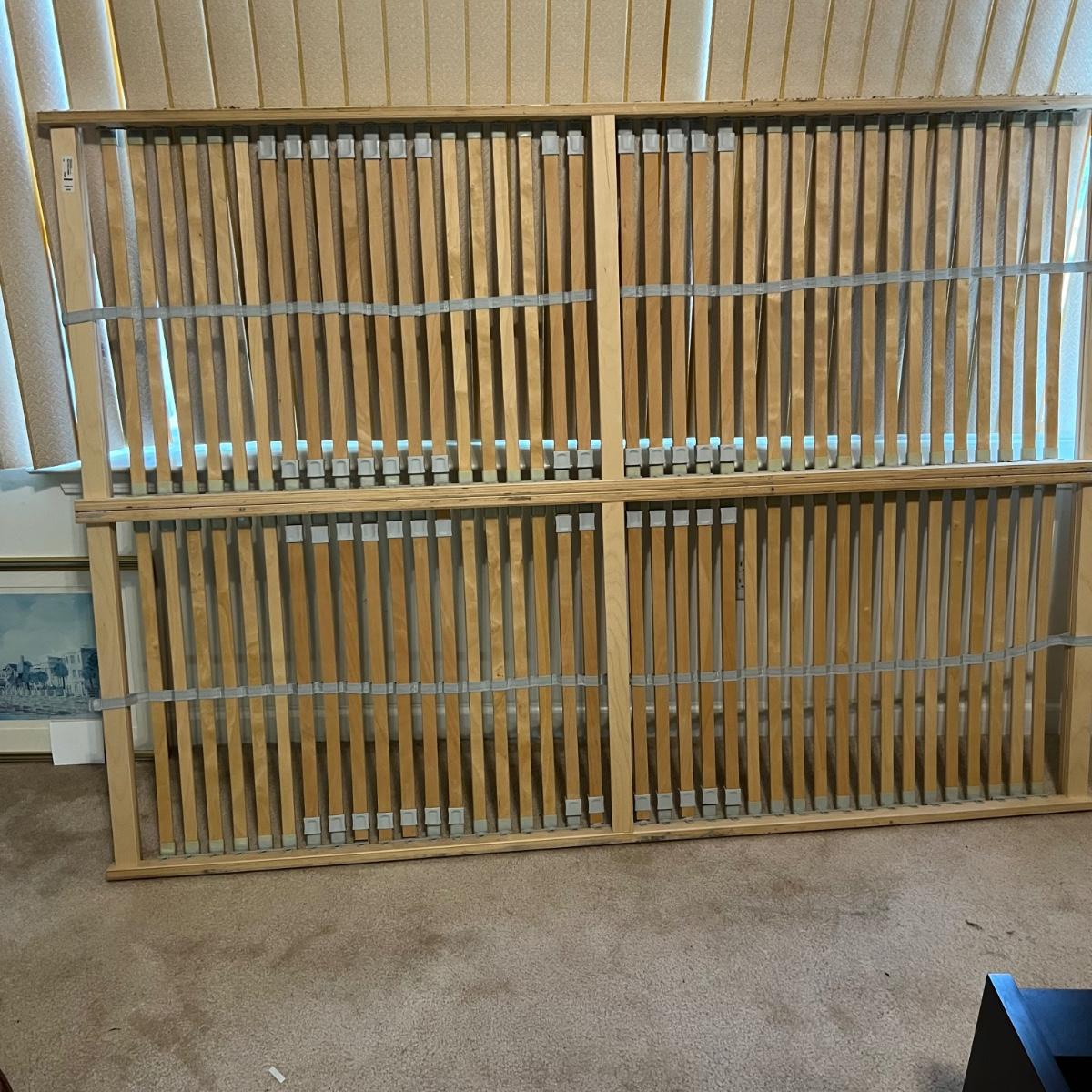 Items are likely to be IKEA but no mfg. stickers found. Bed measures 63” x 82” x 33”H (headboard) and will fit a double mattress. This bed will need to be disassembled by winning bidder, see images for tools needed.