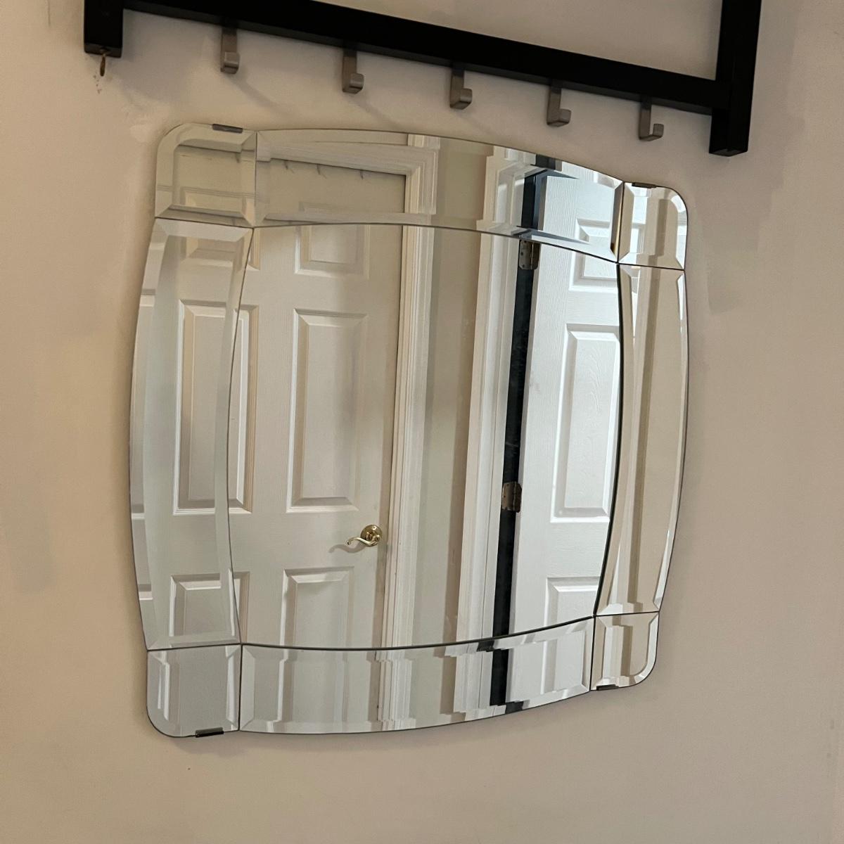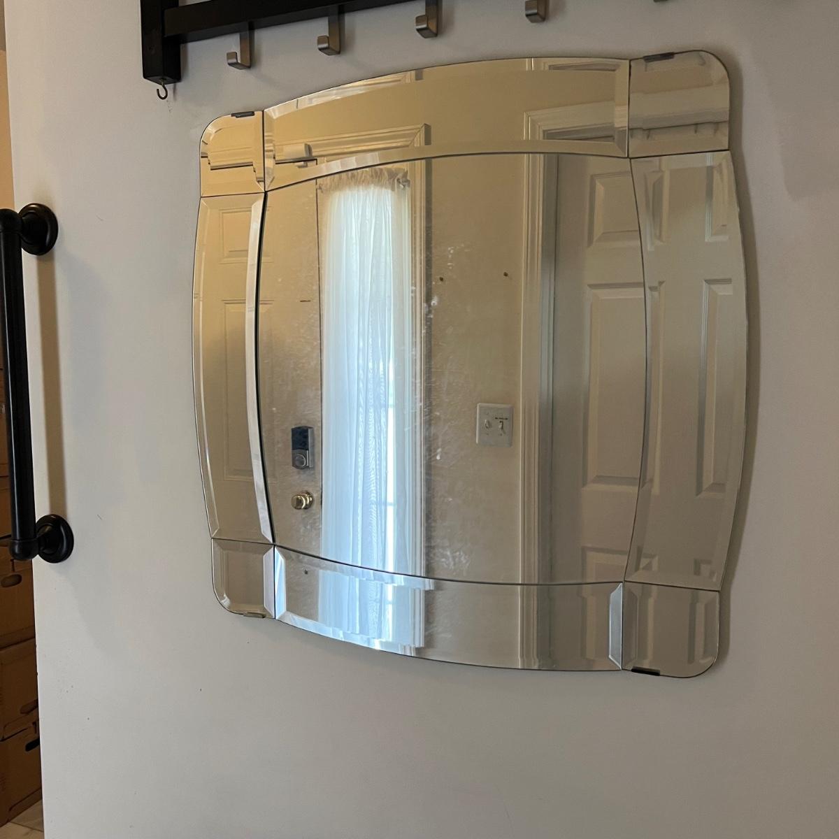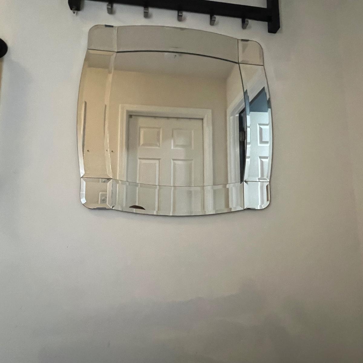 This attractive sleek IKEA mirror has an MCM style. Glass is beveled.