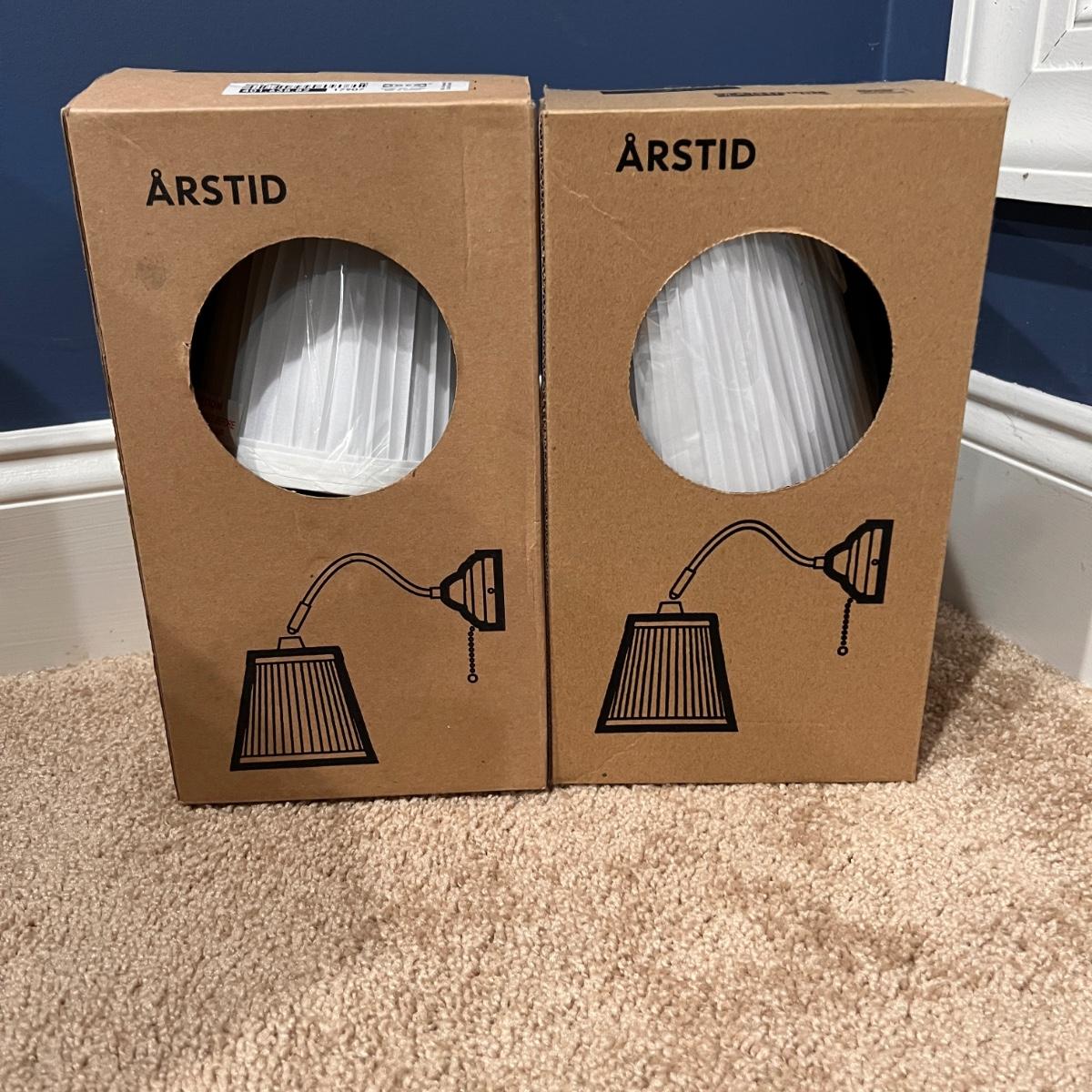 2 new in box lamps. "You can create a soft, cozy atmosphere in your home with a textile shade that spreads a diffused and decorative light." Max.: 40 W Depth: 15 " Shade diameter: 6 " Cord length: 8 ' 2 "