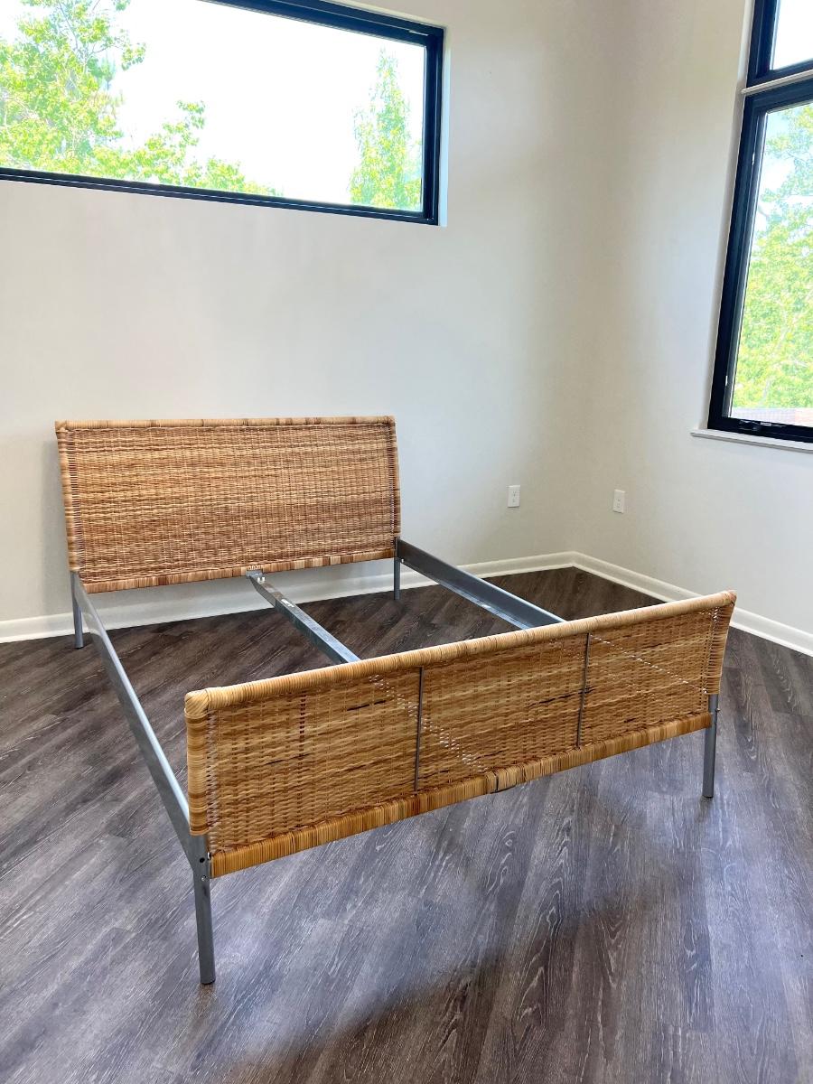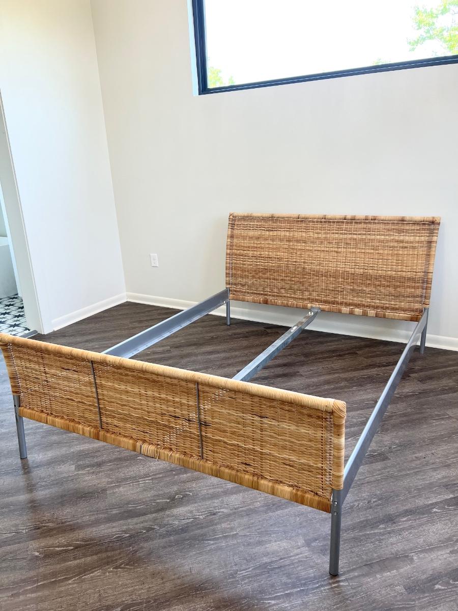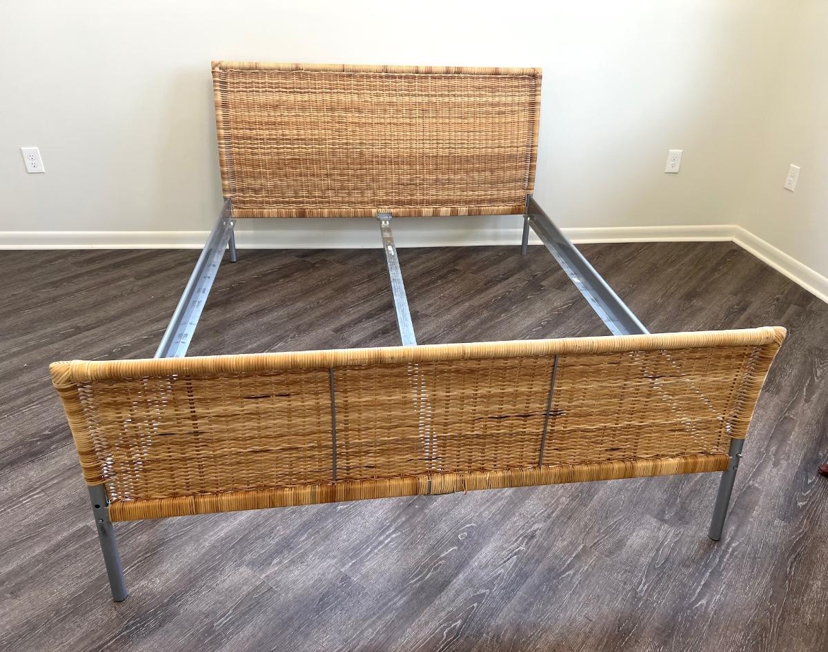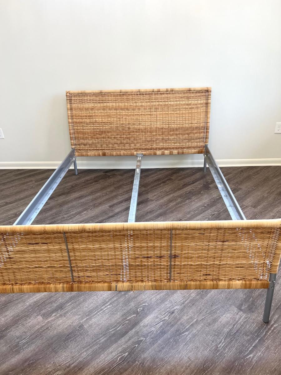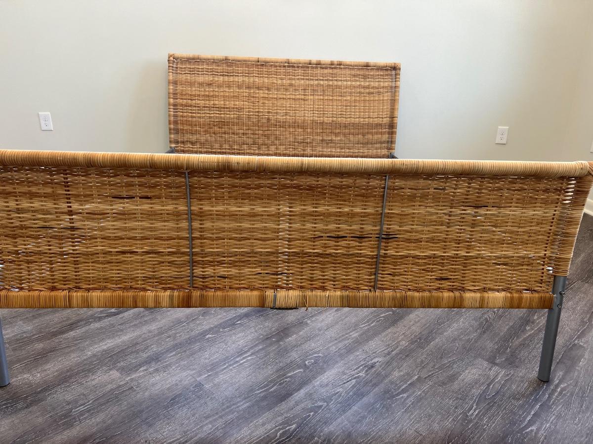 IKEA queen Rattan with steel bed frame. Headboard measures 38 inches tall