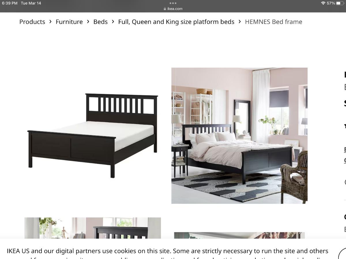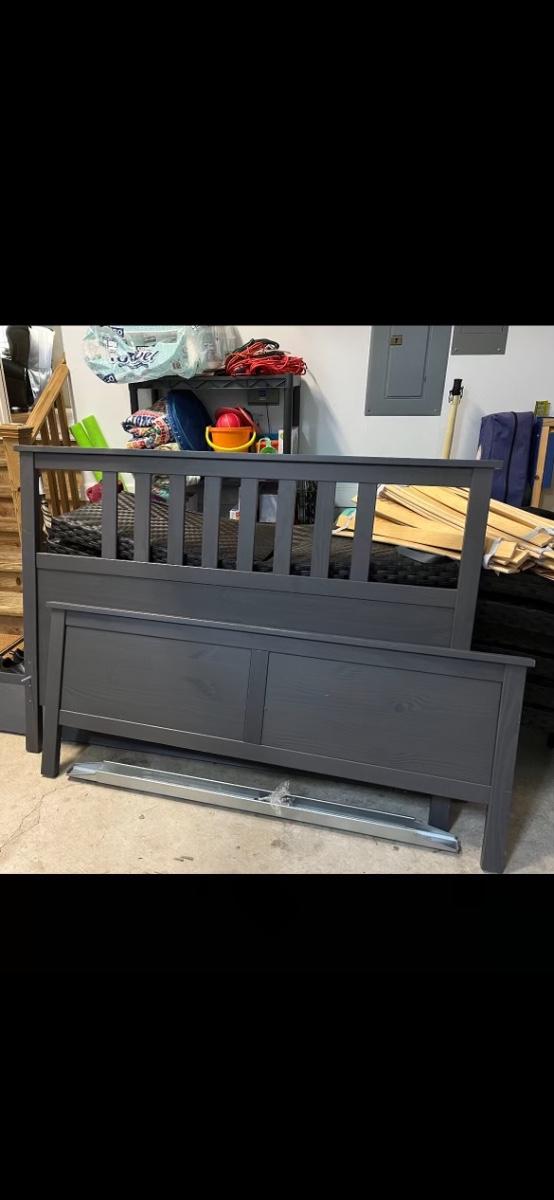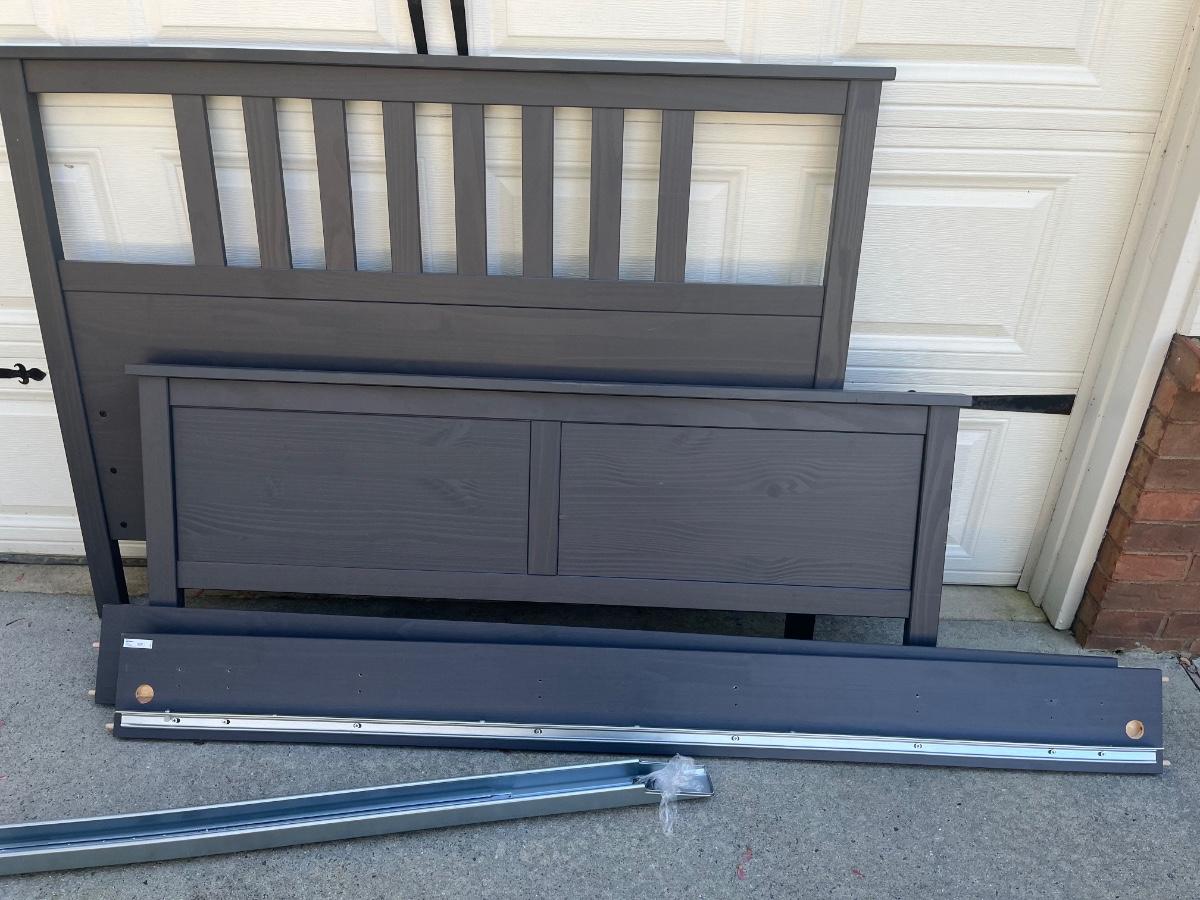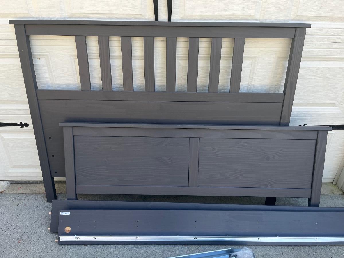 Ikea Queen Size Dark Gray Head Board 65"W 47"H and Foot Board 26"H side boards and all boards to complete the frame