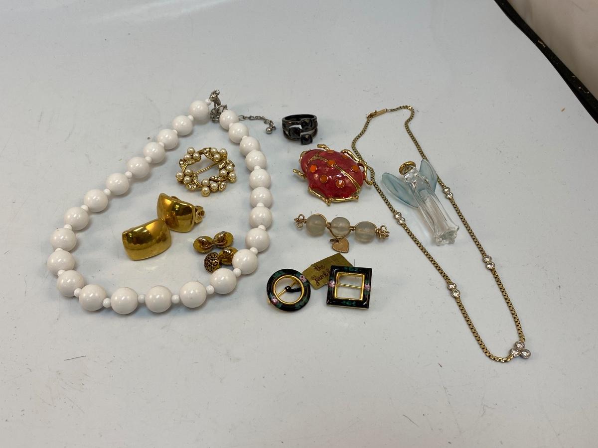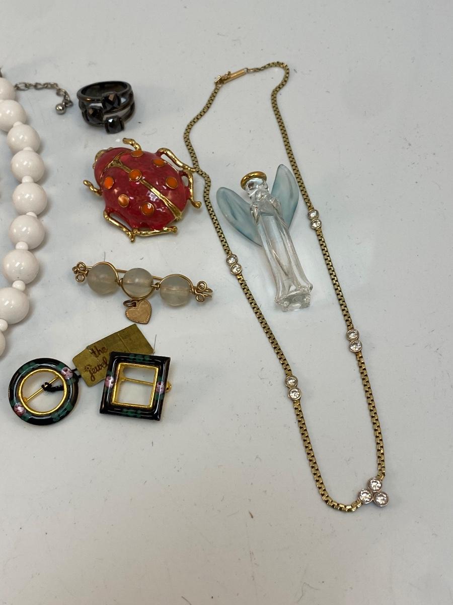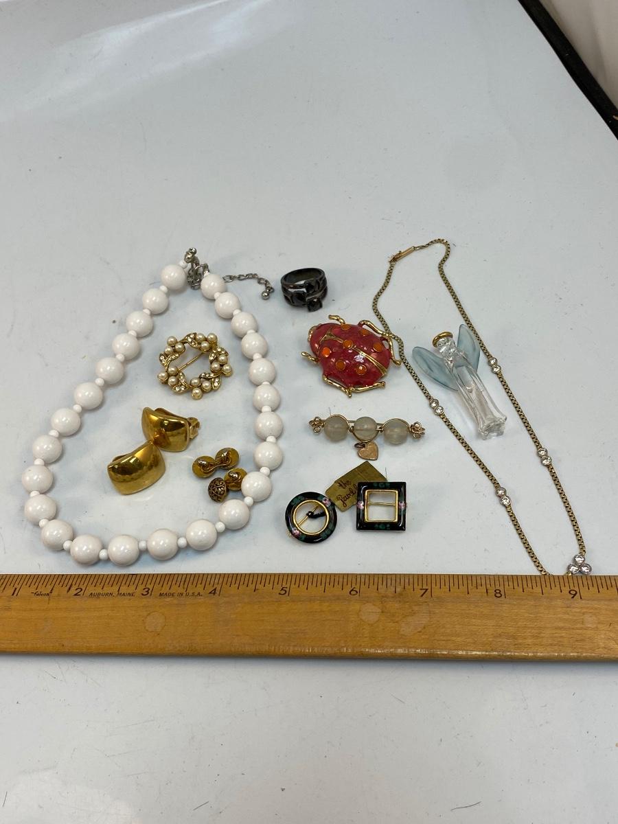 Mixed Lot of Vintage Retro Costume Fashion Jewelry Necklaces Pins Earrings. In good condition. Fashion pieces. The blown glass angel has a loop at top for hanging.