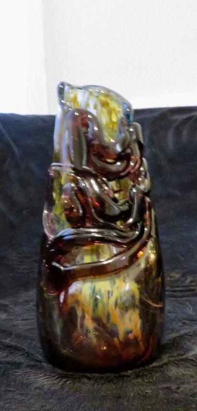 IL1    ART GLASS BRUTALIST VASE SIGNED