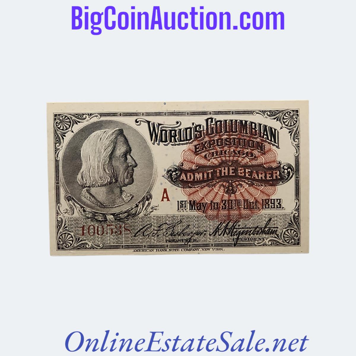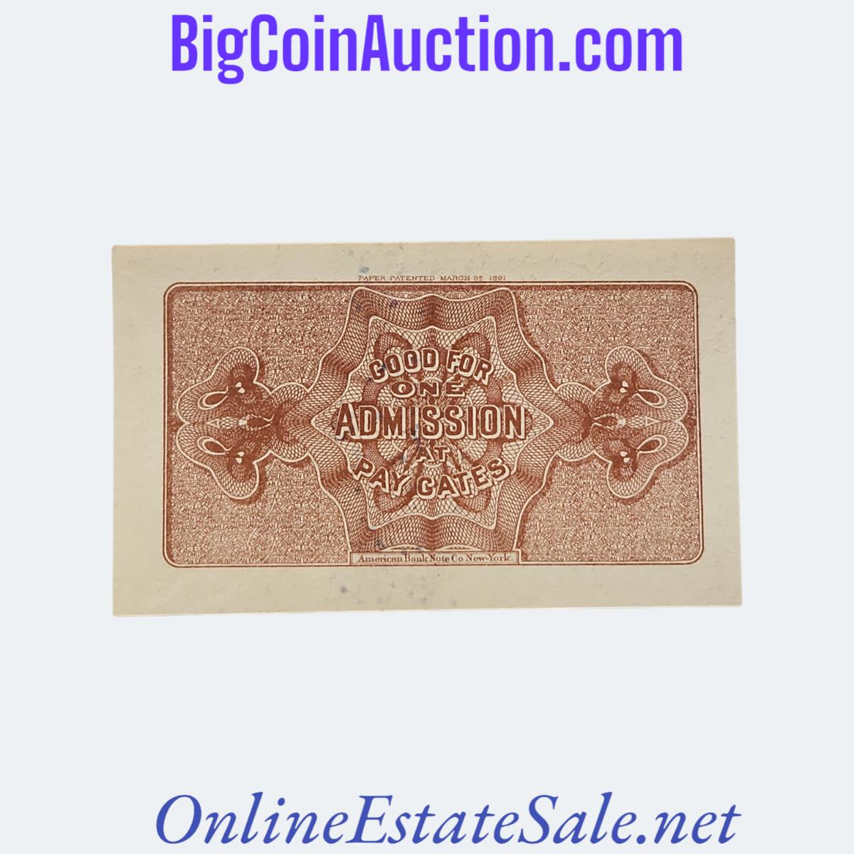 Illinois, Chicago Admit One - World's Columbia Exposition, 1893. Series A - Second Issue.