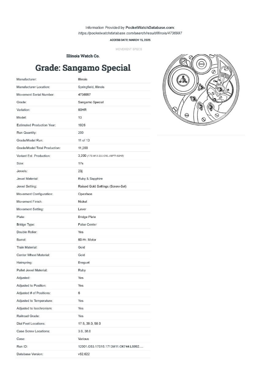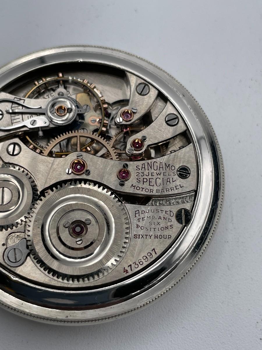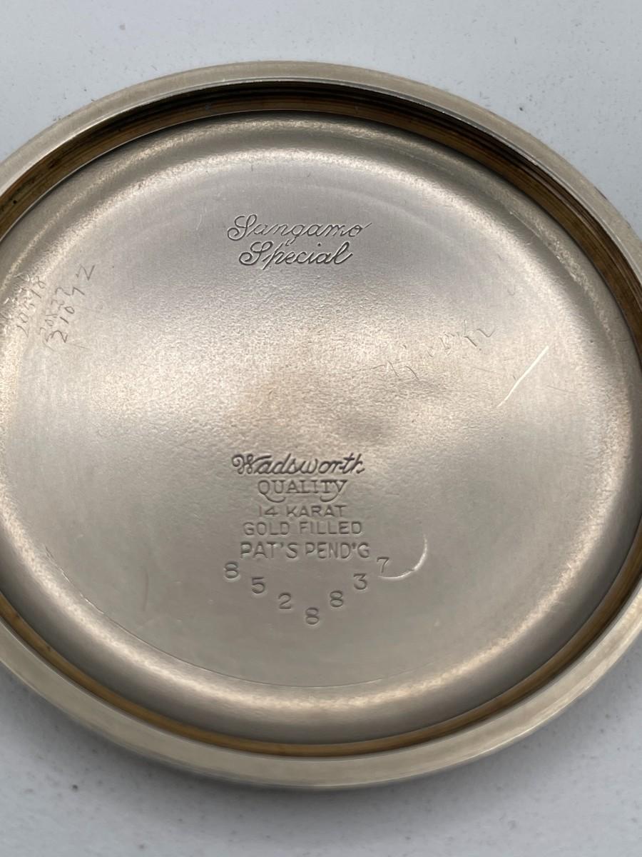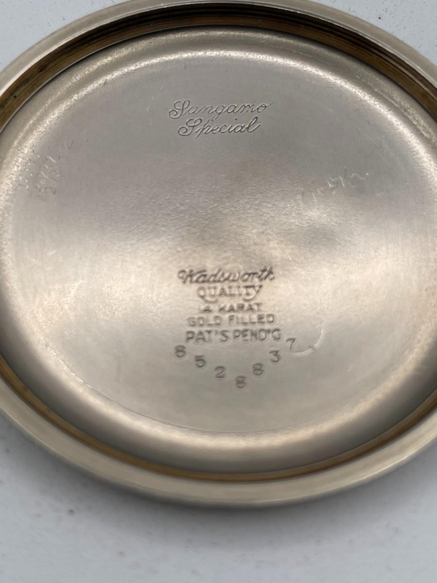 Illinois Sangamo Special, No. 4736997, Size 17s, Prod Yr. 1926, 23 Jewels. Case: No. 8528837, Wadsworth 14K GF Silver-Tone. Condition - Winder & watch are in working order. This is not a guarantee that all parts are original nor is the watch autheniticated.