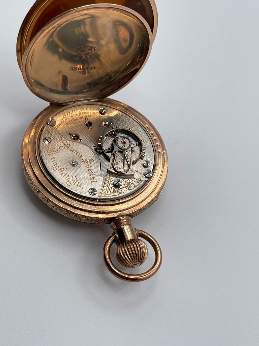 Elgin Bunn Special with 23 Ruby Jewels - Gold Tone Watch, Size 18S, Adjusted temperature 6 positions, Watch Number (2396180) with Gold Filled Keystone Case ( 2524324). Condition - Winder & watch are in working order. This is not a guarantee that all parts are original nor is the watch autheniticated. Estimated Value $255 - $335. Year 1887.