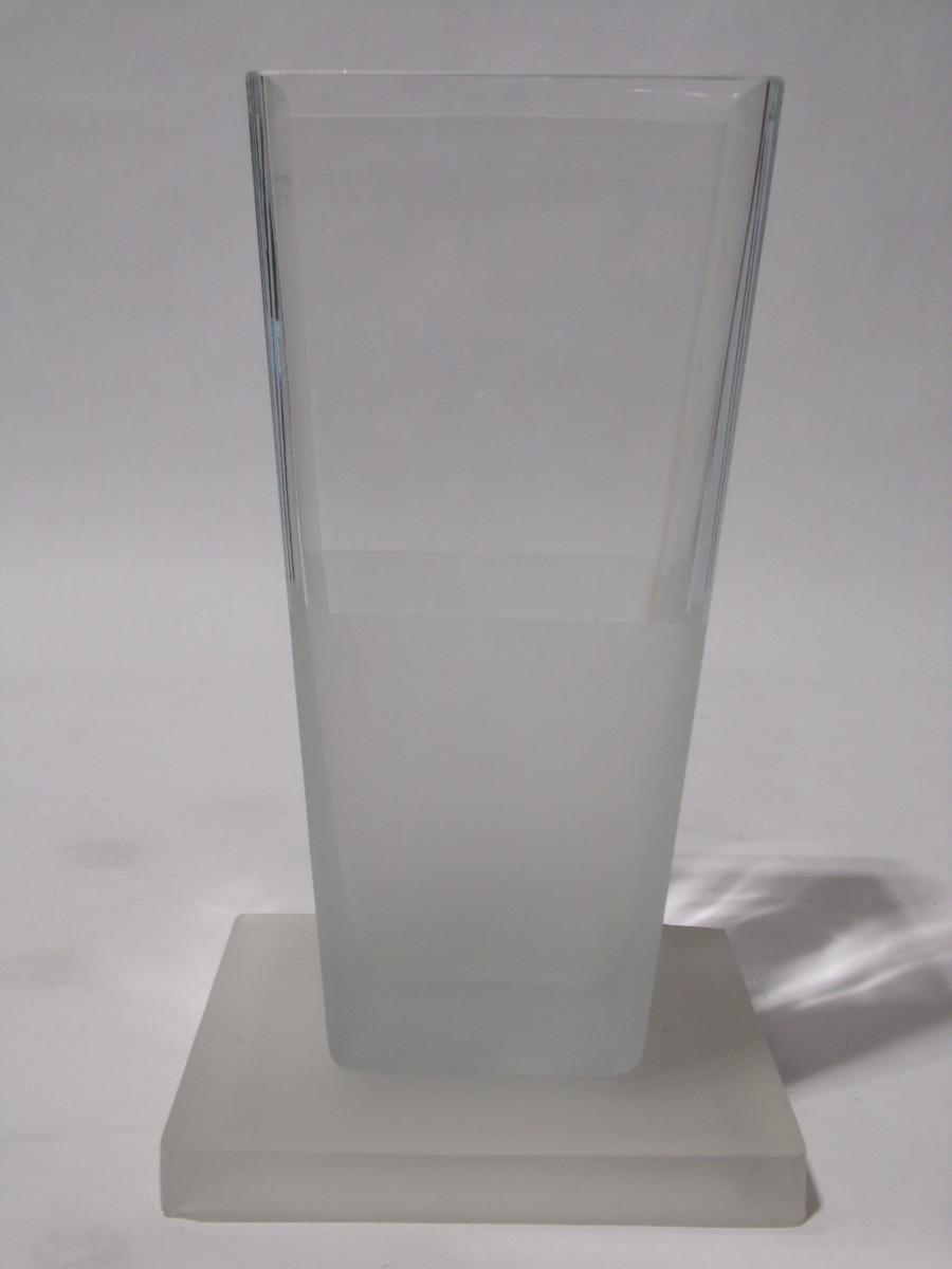 Illusions crystal vase, about 10.5"T, base CHIPPED!