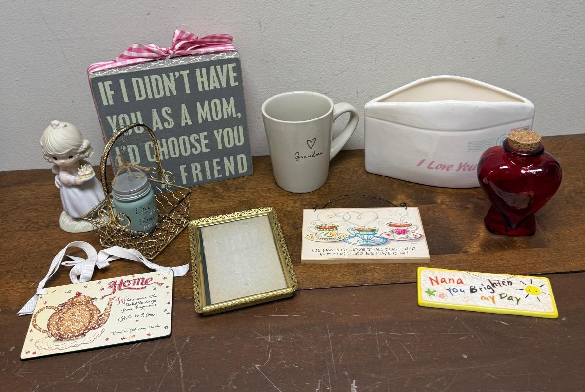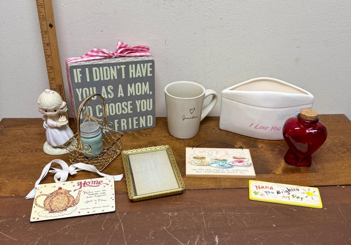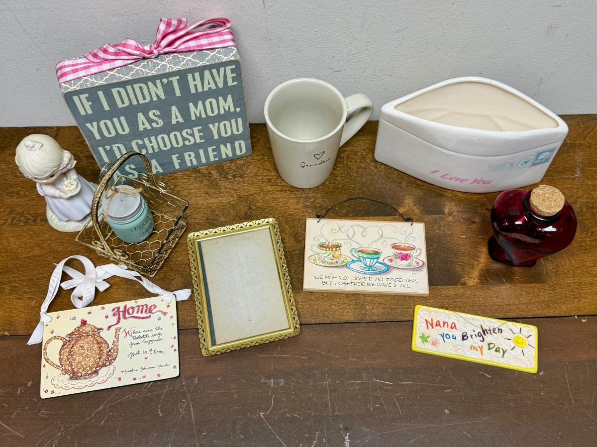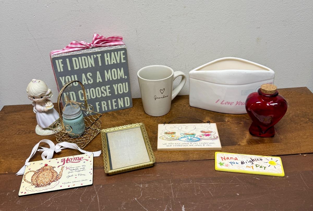 Mother's Day or Grandmother's Day Lot - signs; mug, planter. frame, basket, etc