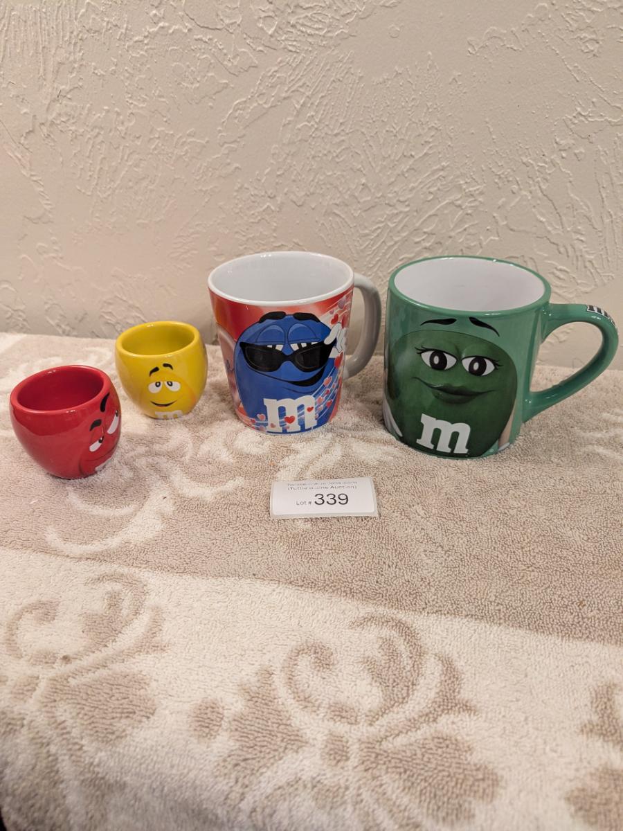 image shows a set of four M&M's character mugs and cups