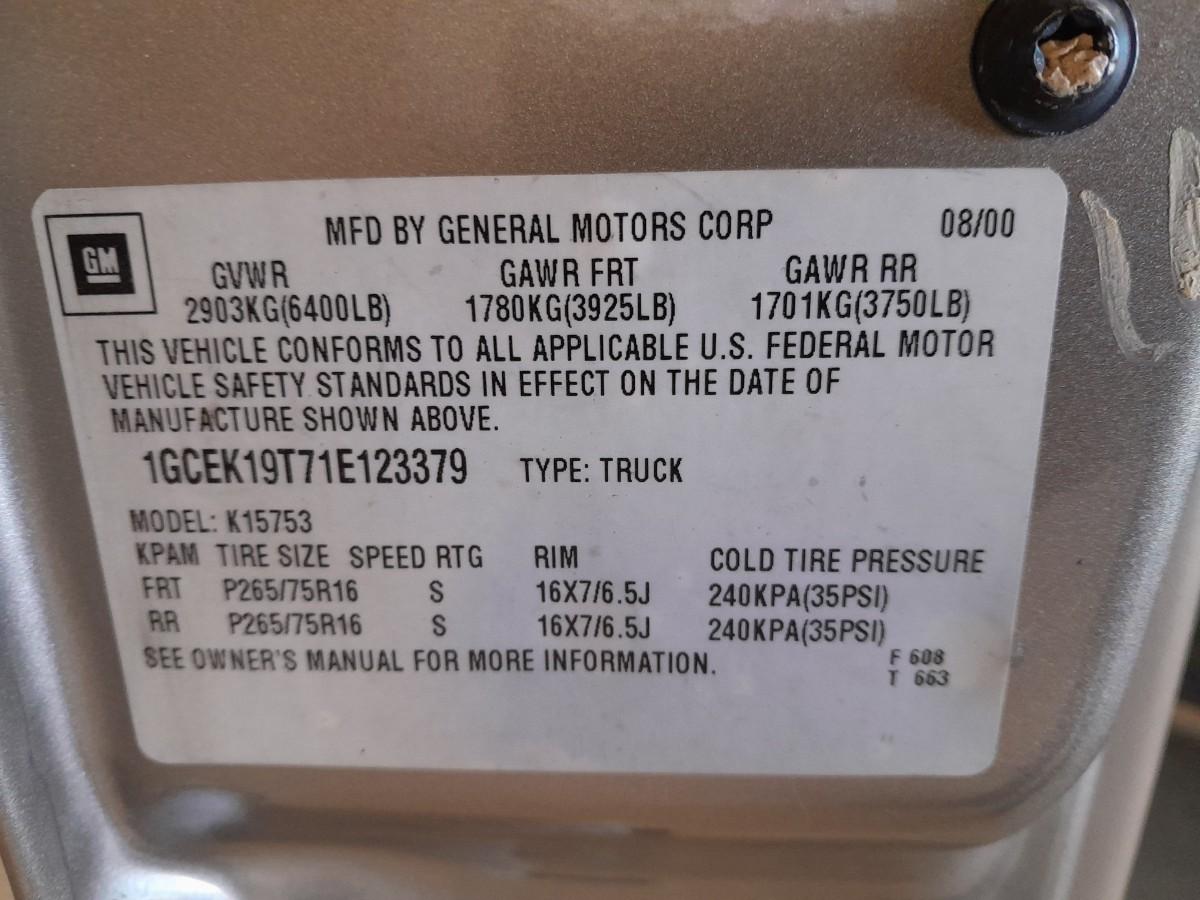 CLEAR TITLE, ONE OWNER, NEW TIRES, 4X4, POWER WINDOWS, LOCKS, A/C, CENTER LOCKING CONSOLE, OVERHEAD CENTER STORAGE FOR GLASSES, GARAGE OPENERS, ETC. CD PLAYER, STARTS, RUNS, AND DRIVES GREAT! VIN NUMBER 1GCEK19T71E123379
