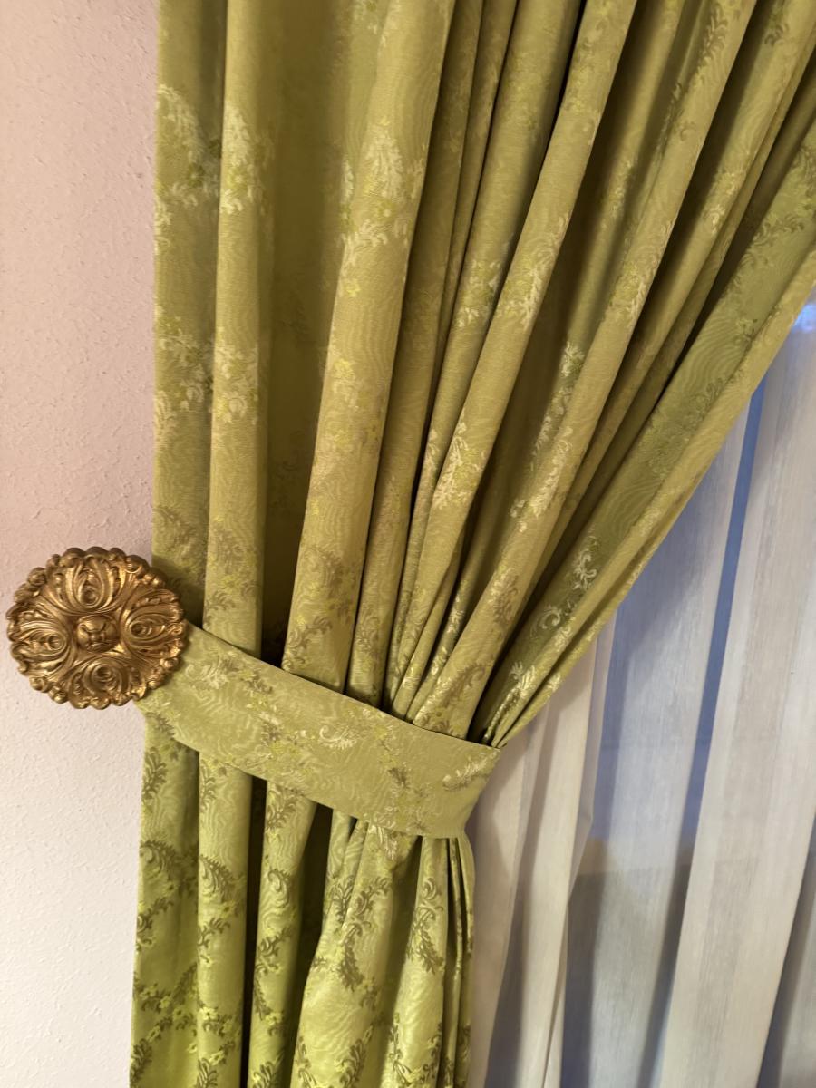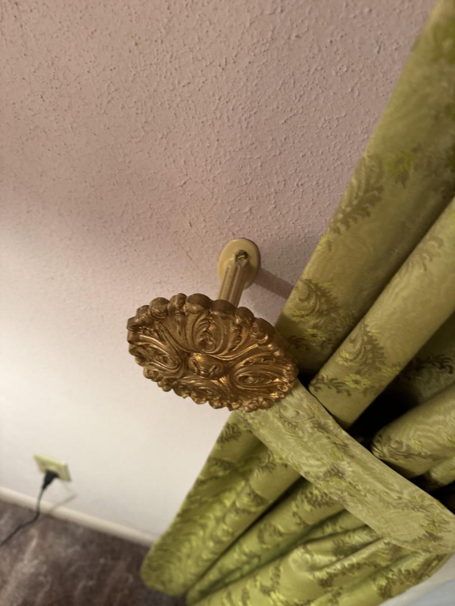 As shown and incredibly fabulous. Includes sheers but noticed 1 small tear in sheer