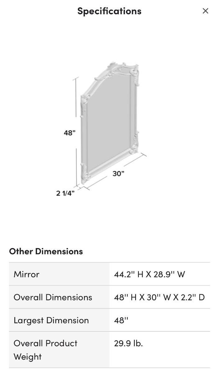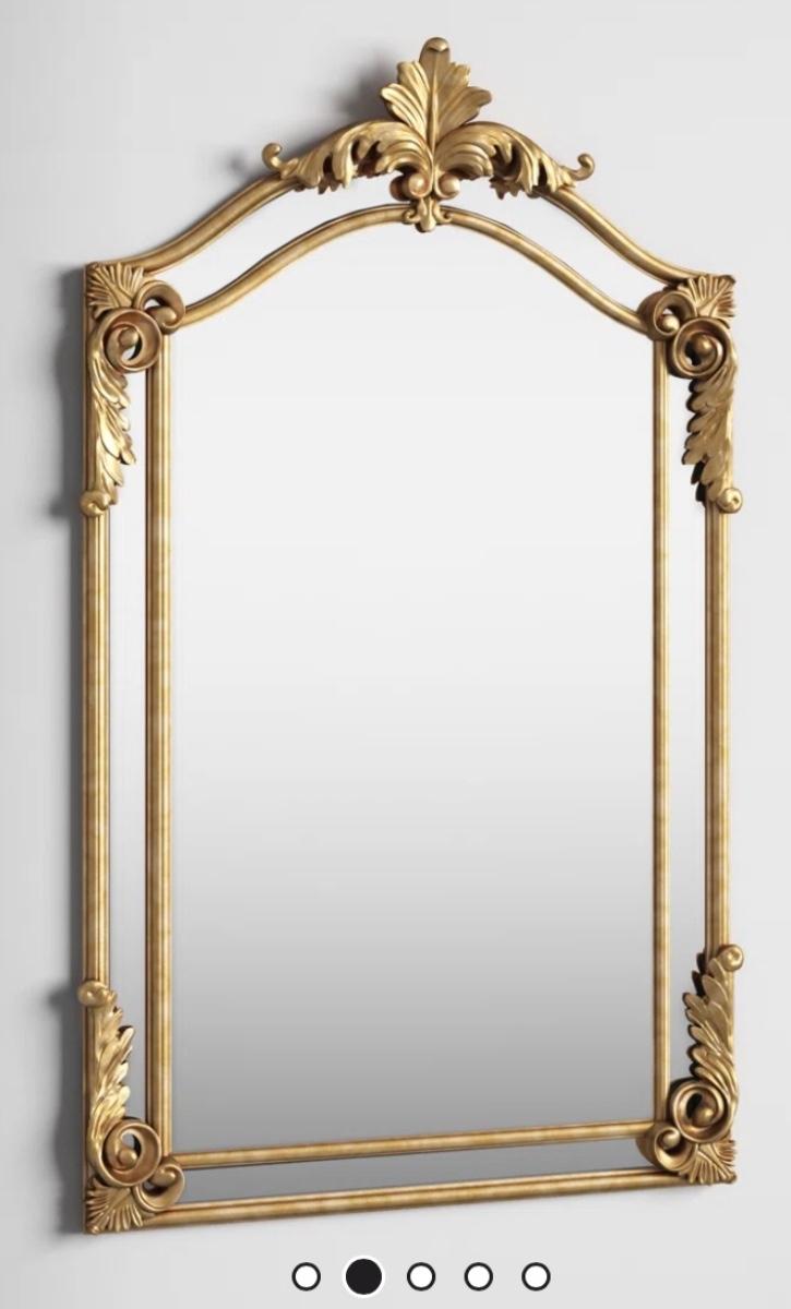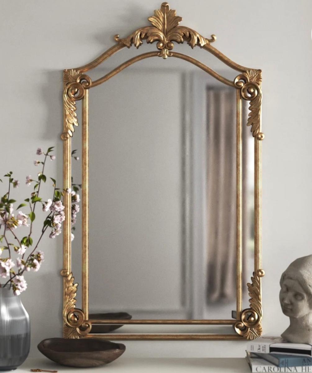 Add a bit of glamour to your bedroom or powder room with this arched wall mirror. Crafted from polyresin, this mirror's romantic, Baroque-inspired details and gold leaf finish look almost as good as the reflection staring back at you. Its sizable 48'' H x 30'' W dimensions make this mirror a perfect statement piece for any wall. Mounting hardware is not included, so be sure you have a few options on hand. Hand-curated by Kelly Clarkson.