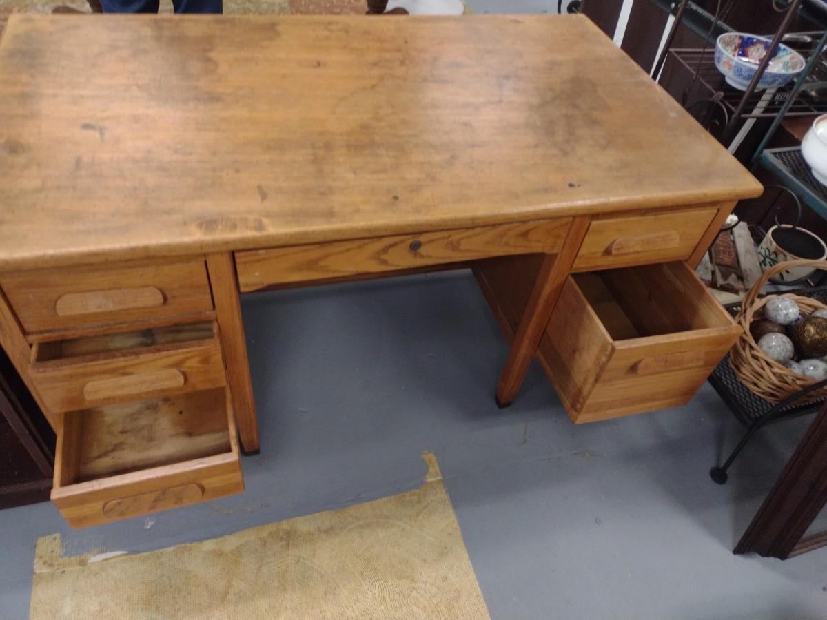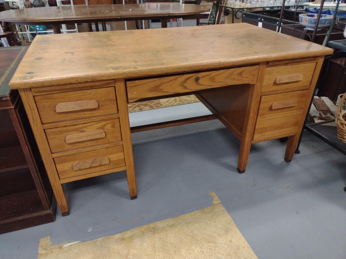 Vintage Imperial Desk Co. Solid Oak Library Desk