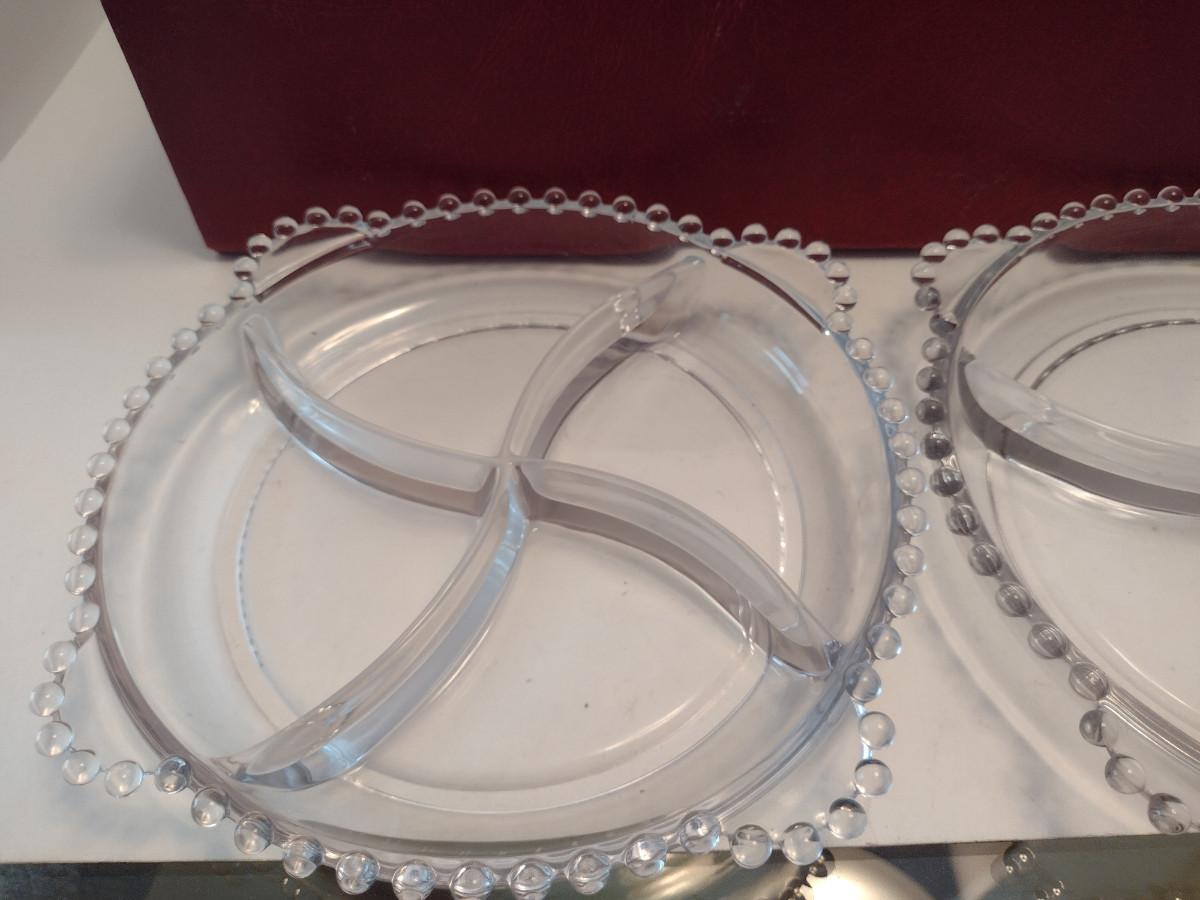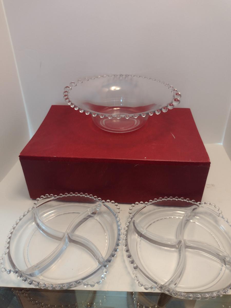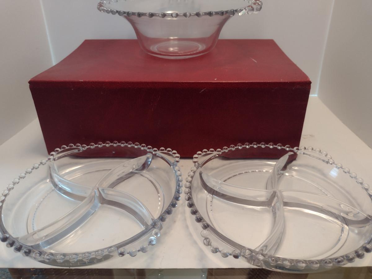 Imperial Candlewick Bowl and Divided Relish Trays- Three Pieces Total