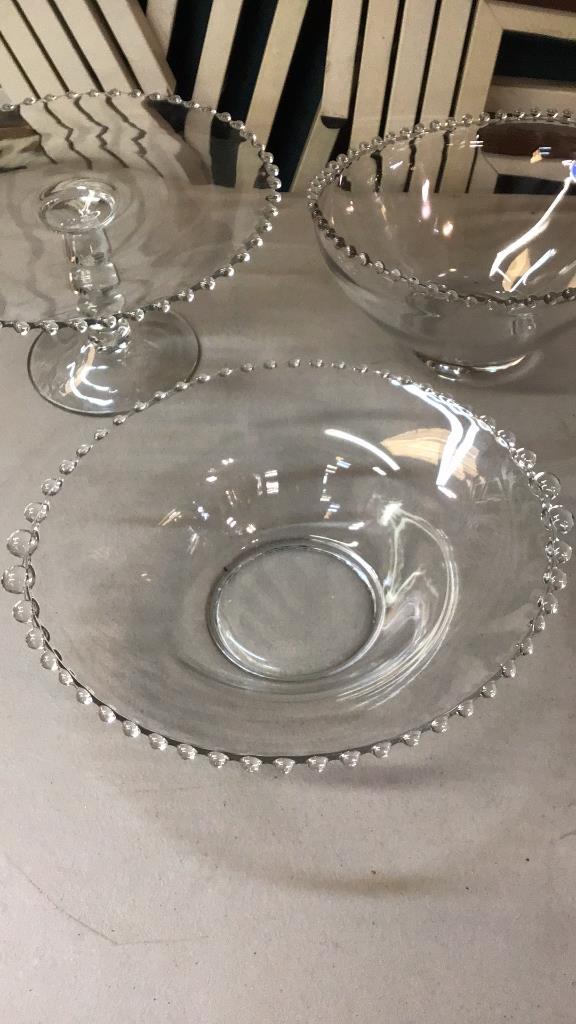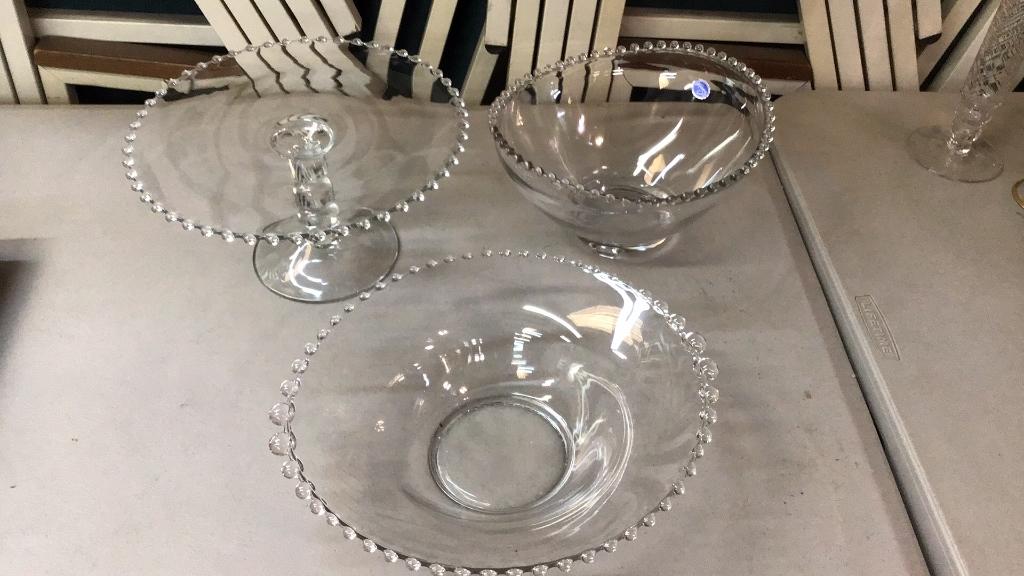 Imperial Candlewick Cake Plate and 2 Serving Bowls