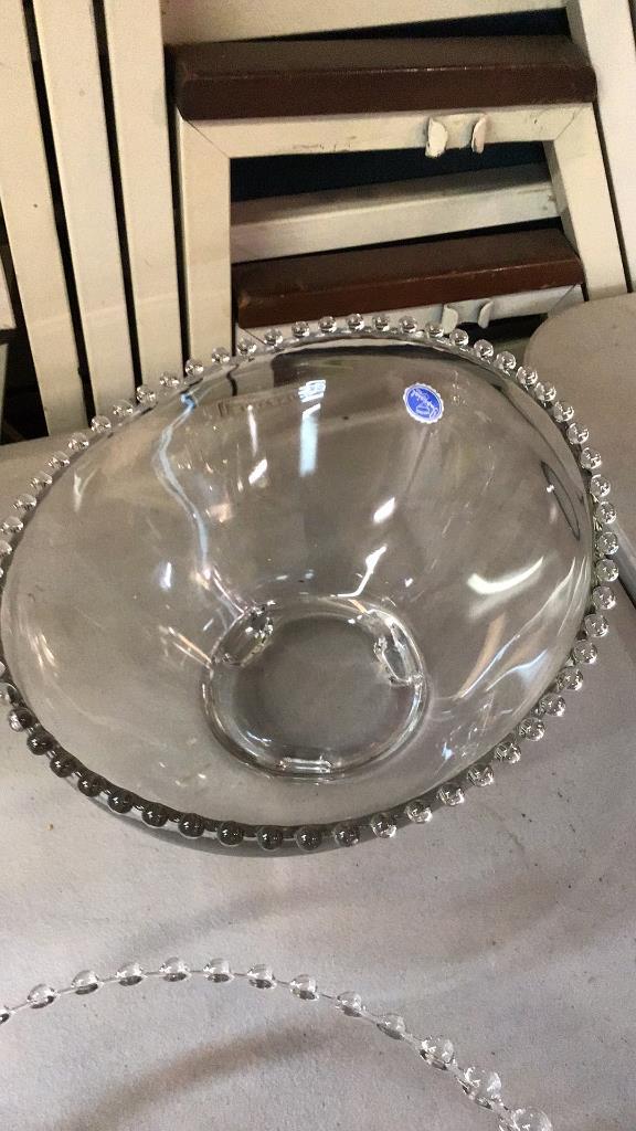 Cake plate 6 inch height x 11 inch diameter..1 bowl with sticker Line Item # 18