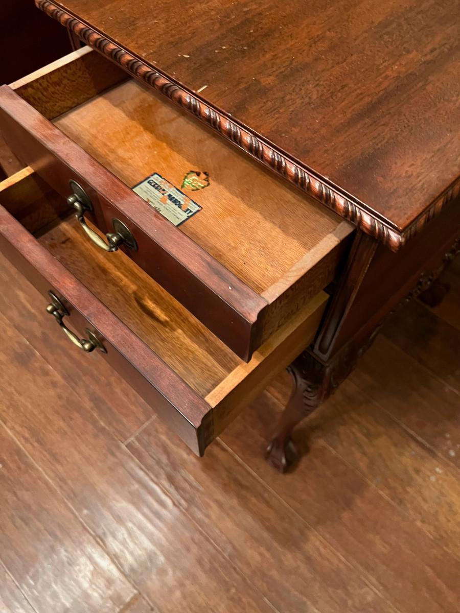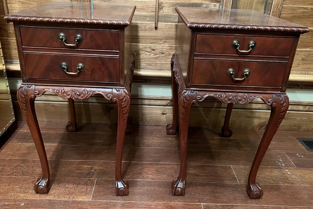 Imperial Furniture Mahogany End Tables or Night Stands c.1940, Chippendale style feet and pulls, classic furniture design. Some wear age related, measure 21"x14", 26" tall