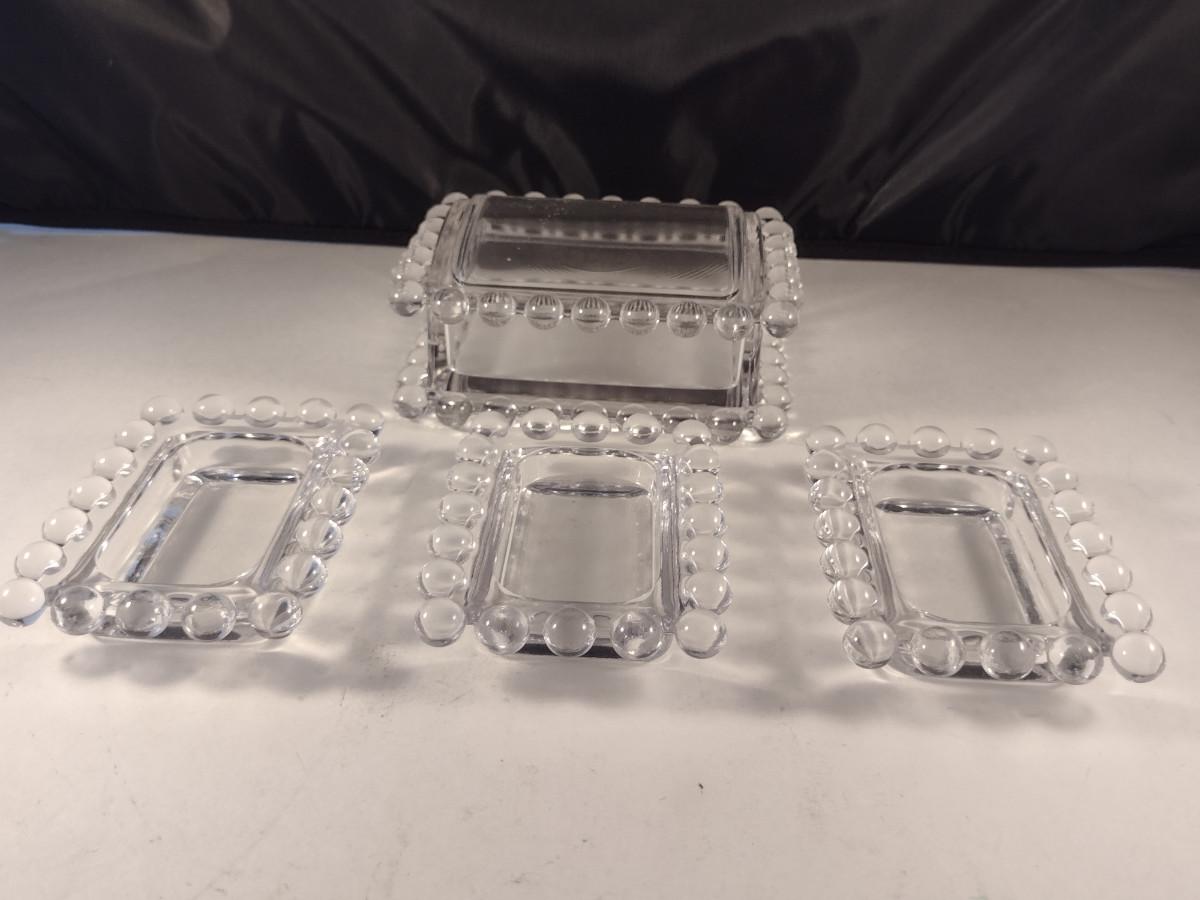 Imperial Glass 'Candlewick' Cigarette Box with Lid and Ashtrays