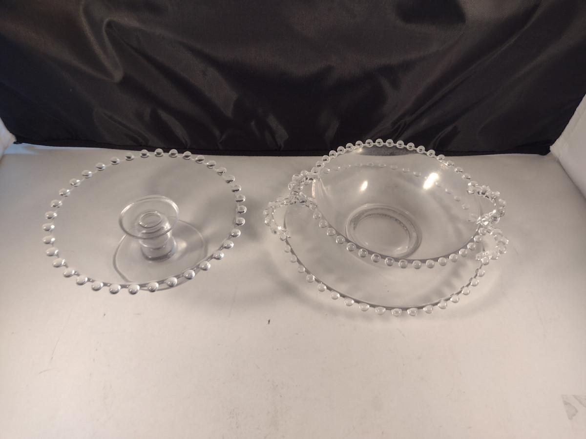 Imperial Glass 'Candlewick' Design Cake Stand and Bowl with Under Plate