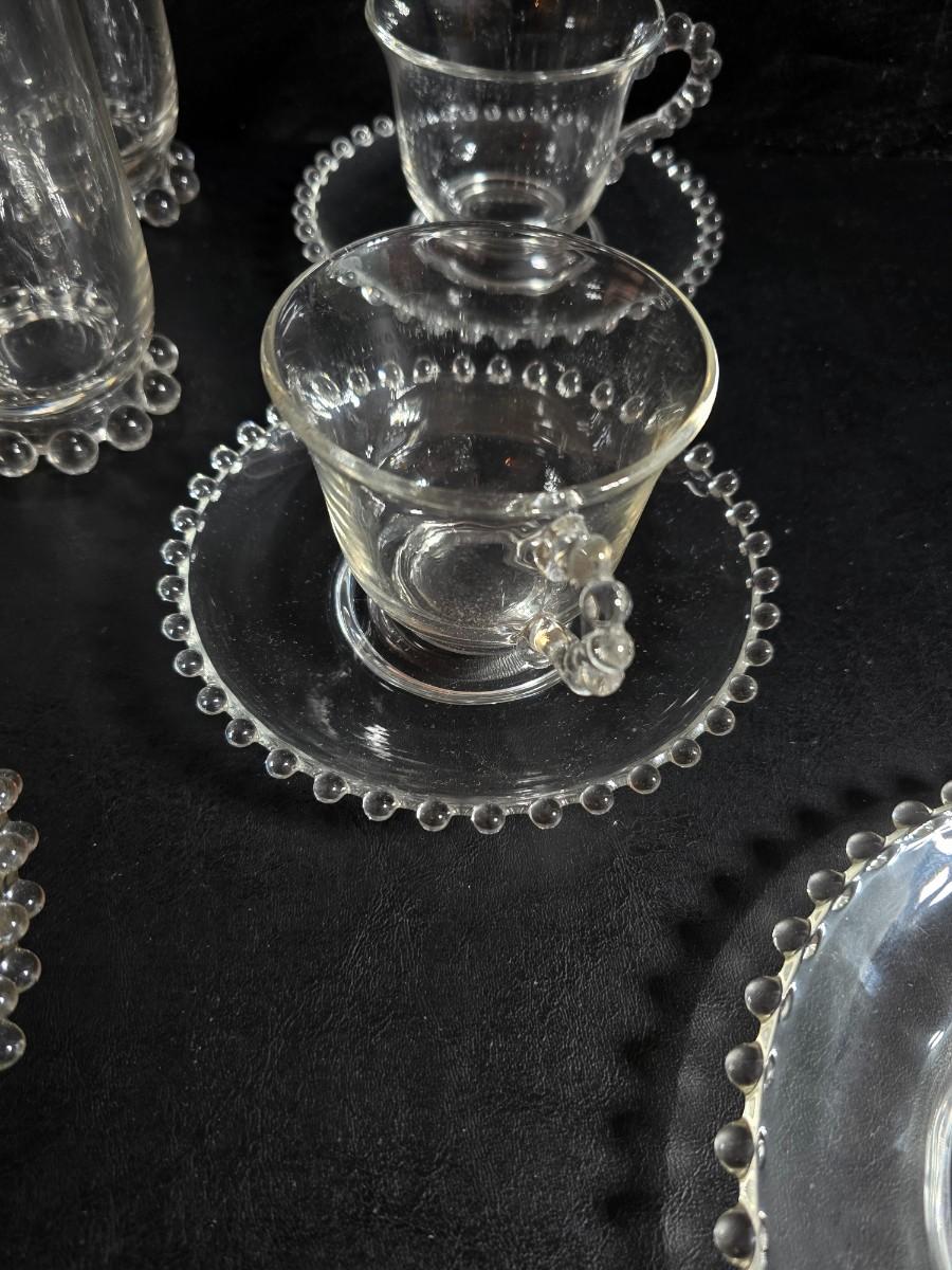 Imperial Glass Company Candlewick pattern setting for 4 - Mugs with saucers - Glasses and snack plates (2 of 2)
