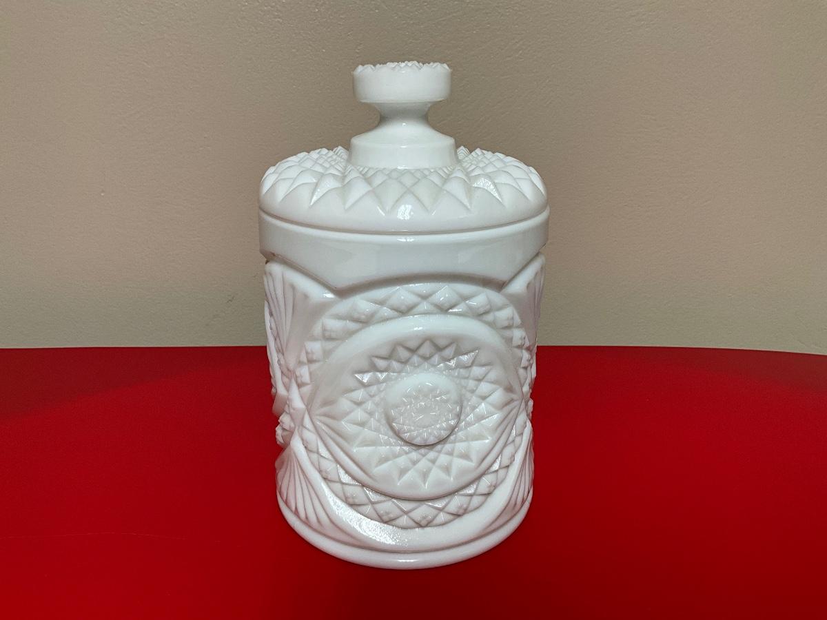 Imperial Glass Hobstar milk glass biscuit jar/lid